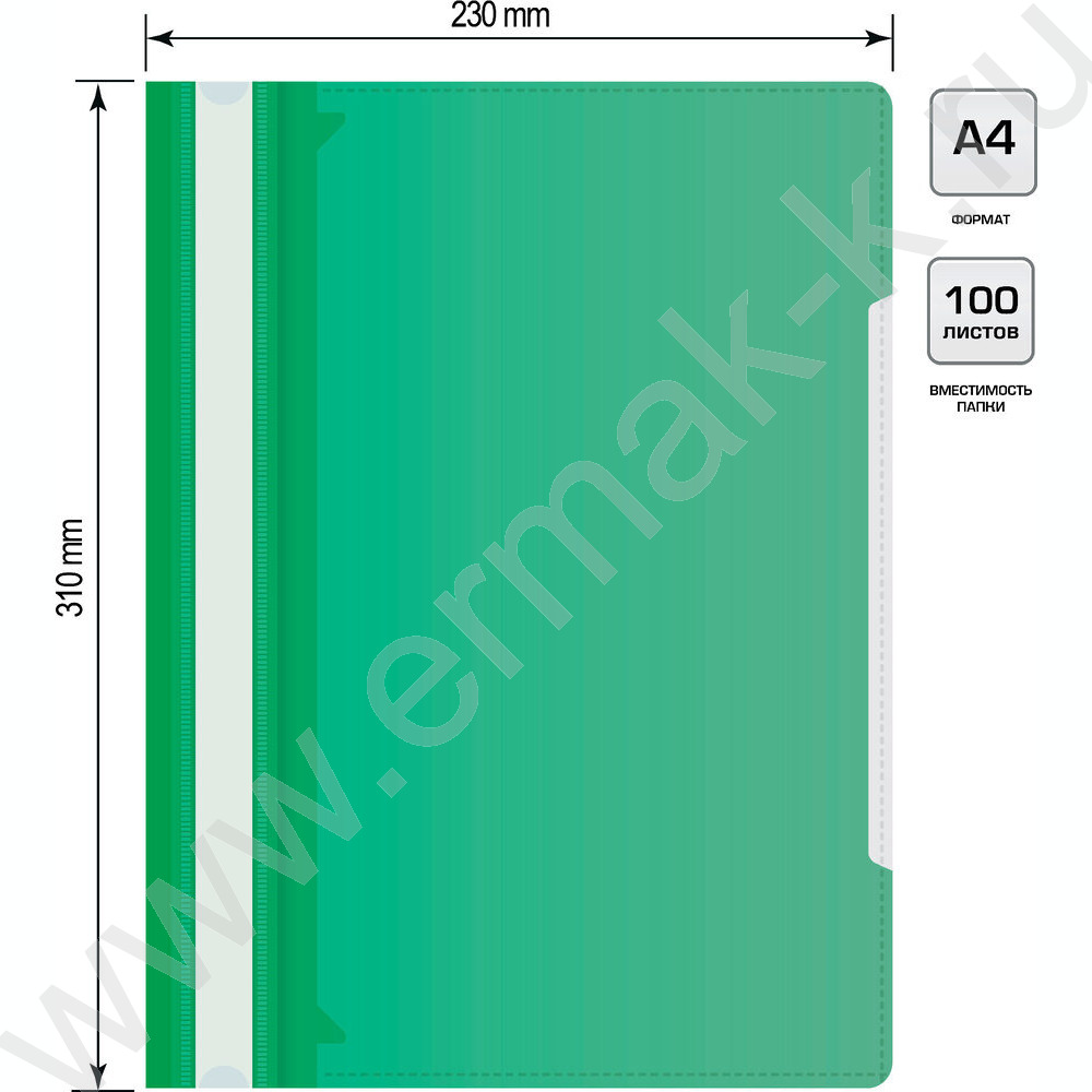 Скоросшиватель пл зеленый прозрач.верх.лист, карман на лиц.стороне
