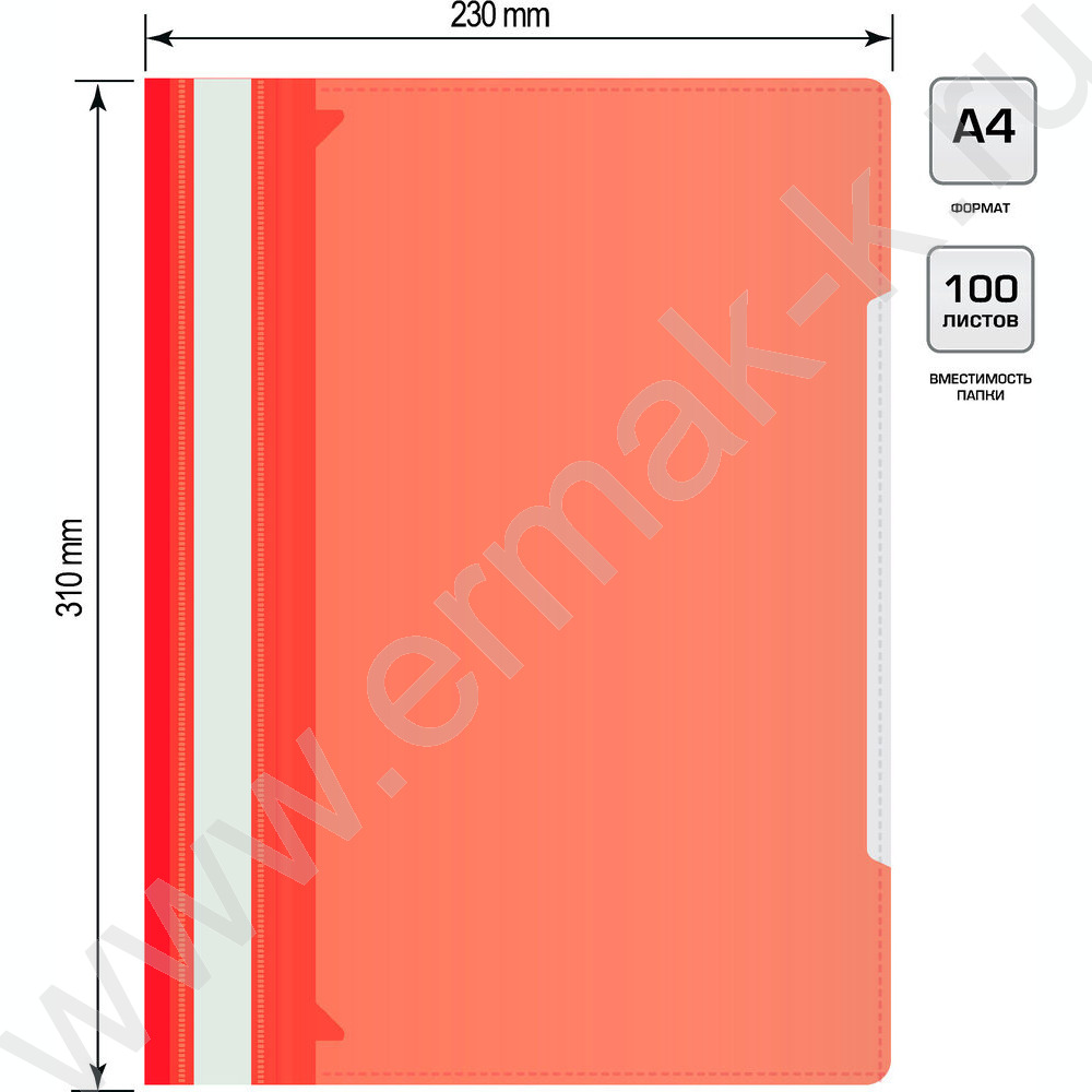 Скоросшиватель пл красный прозрач.верх.лист, карман на лиц.стороне