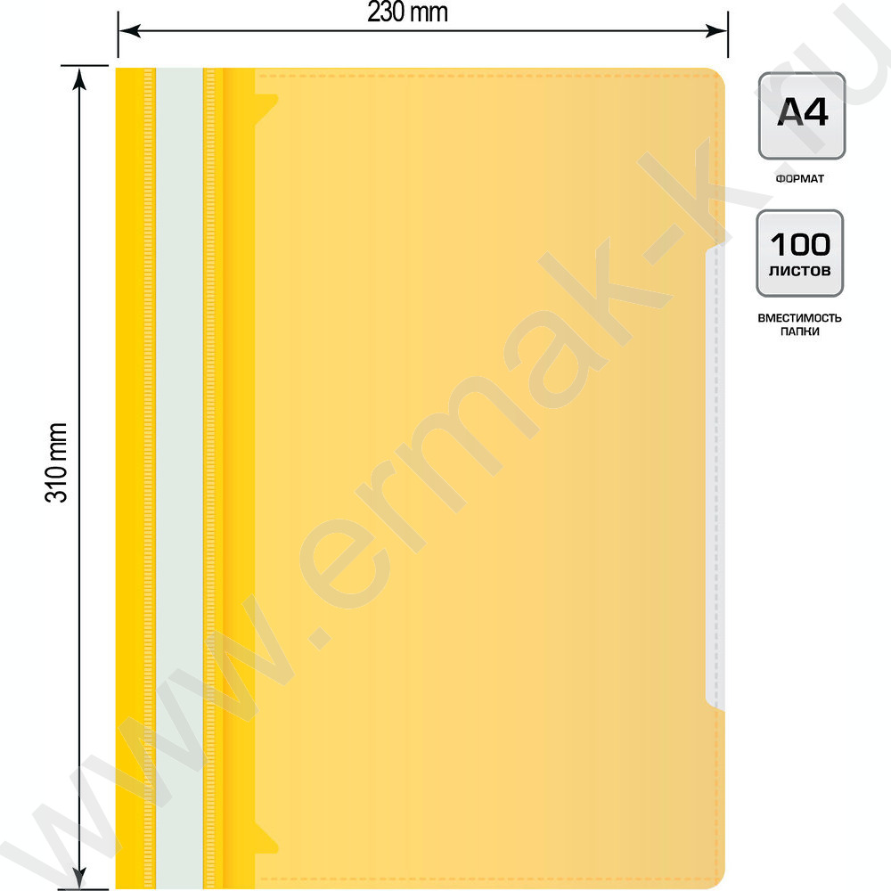 Скоросшиватель пл желтый прозрач.верх.лист, карман на лиц.стороне