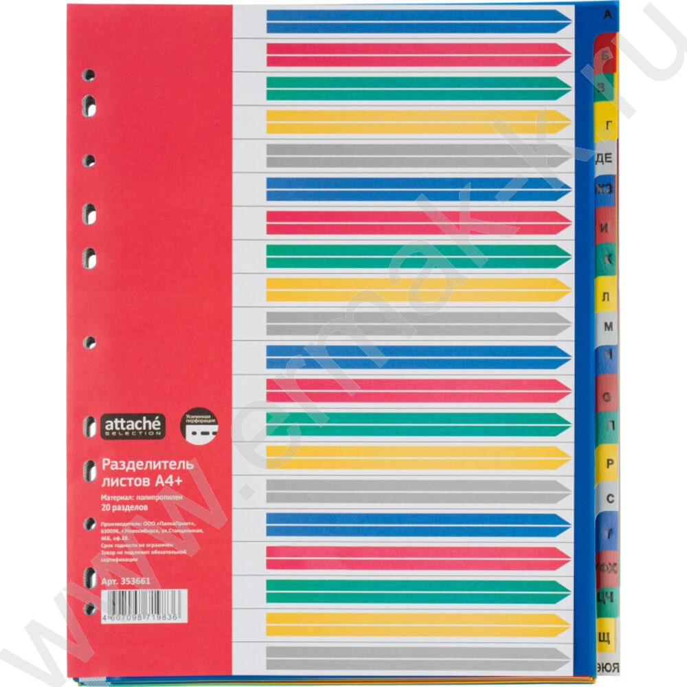 Разделитель листов пластик А4 рус.алфавит А-Я 20цв
