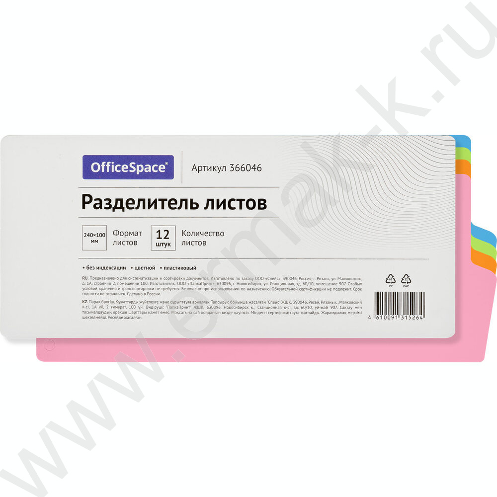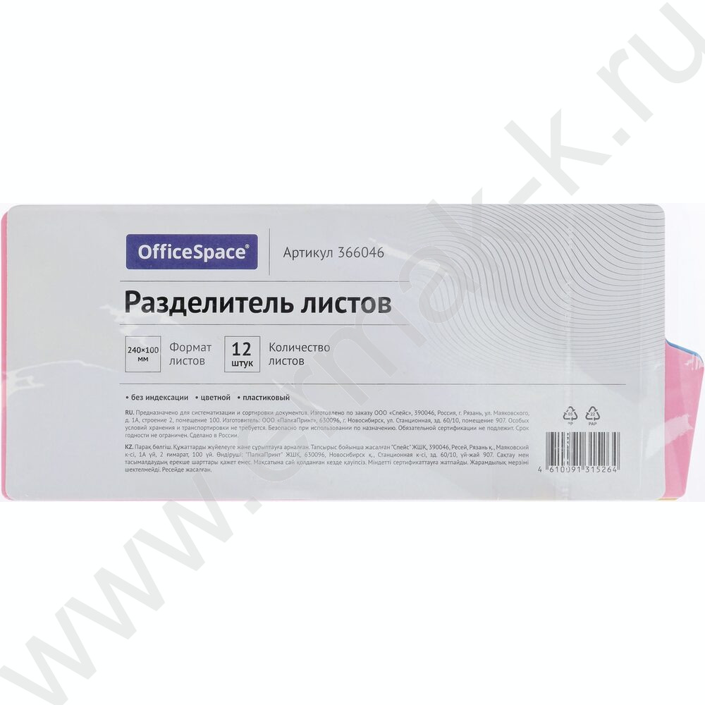 Разделитель листов пл. 240*100мм 12л, без индексации, цветной