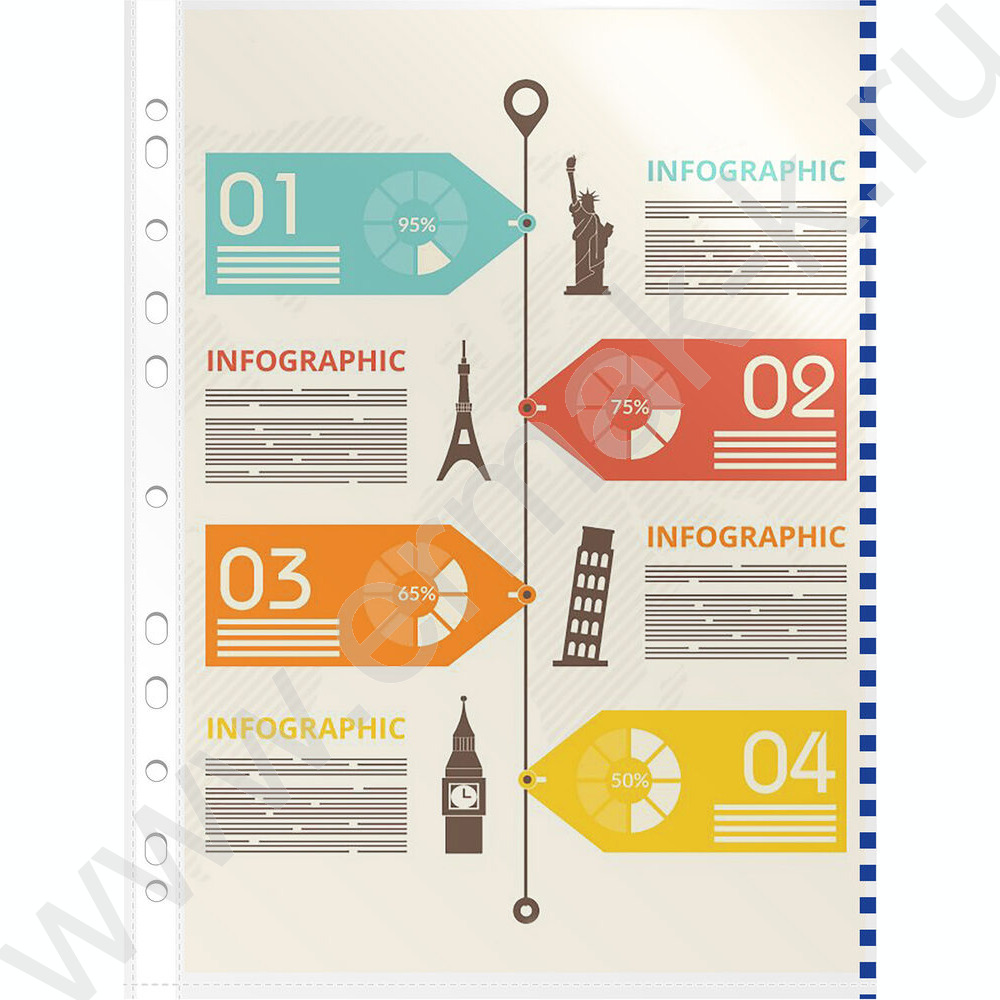 Файлы (мультифора) А4 30мкм Премиум глянцевые цветной ассорти край
