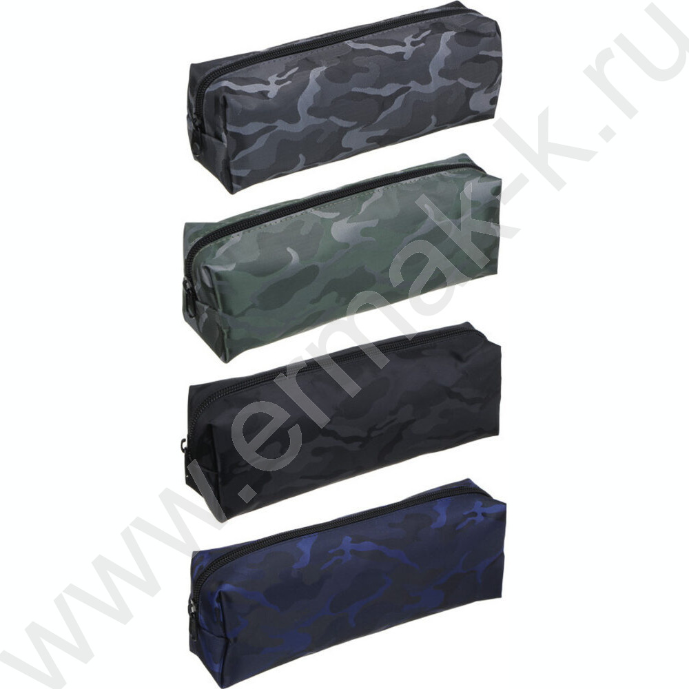 Пенал б/наполн. 1молния 200x65x45мм прямоугольный, принт "милитари", ПВХ, 4дизайна