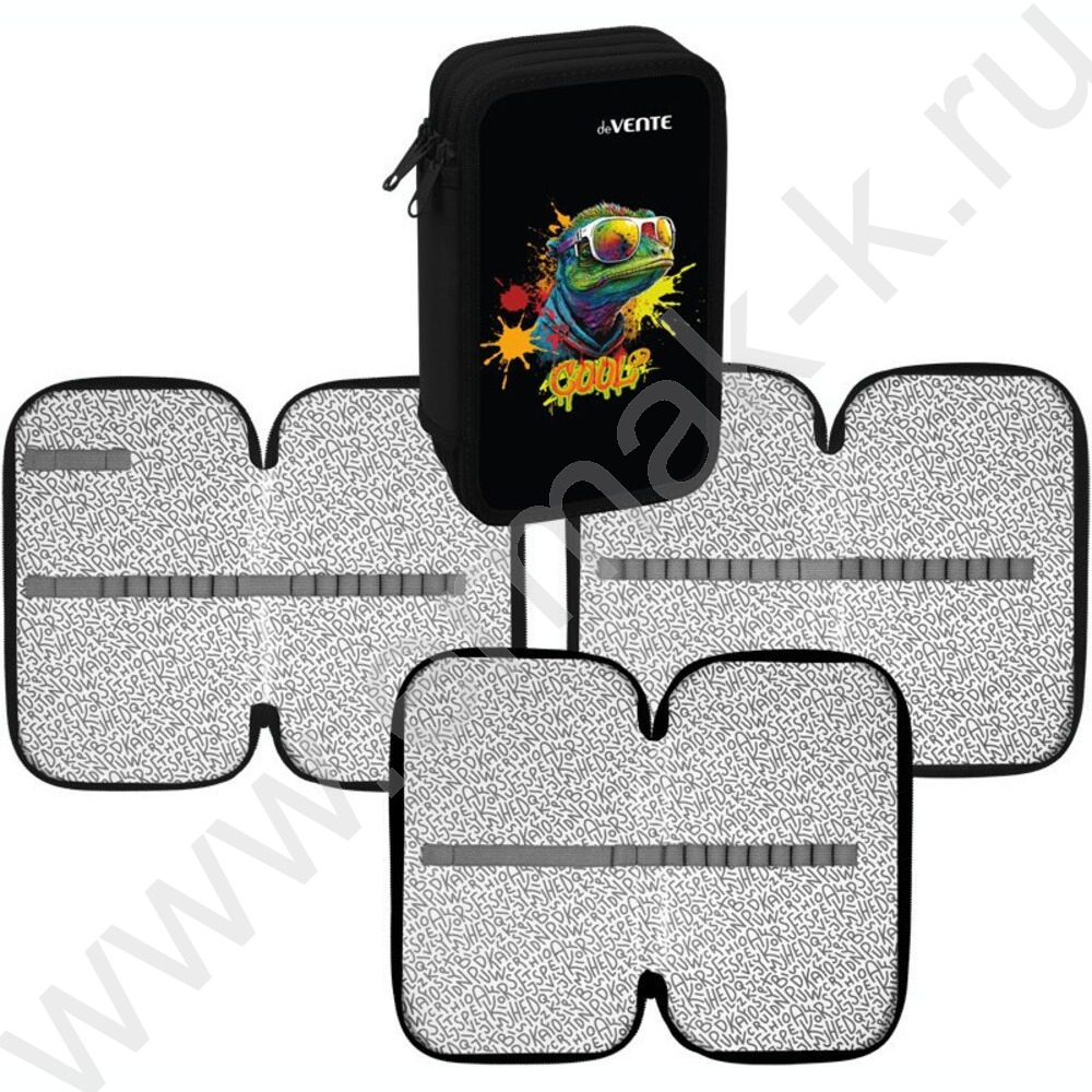 Пенал б/наполн. 3молнии 205x120мм "Cool Lizard", картон с покрытием из фольги с конгрев. тиснени