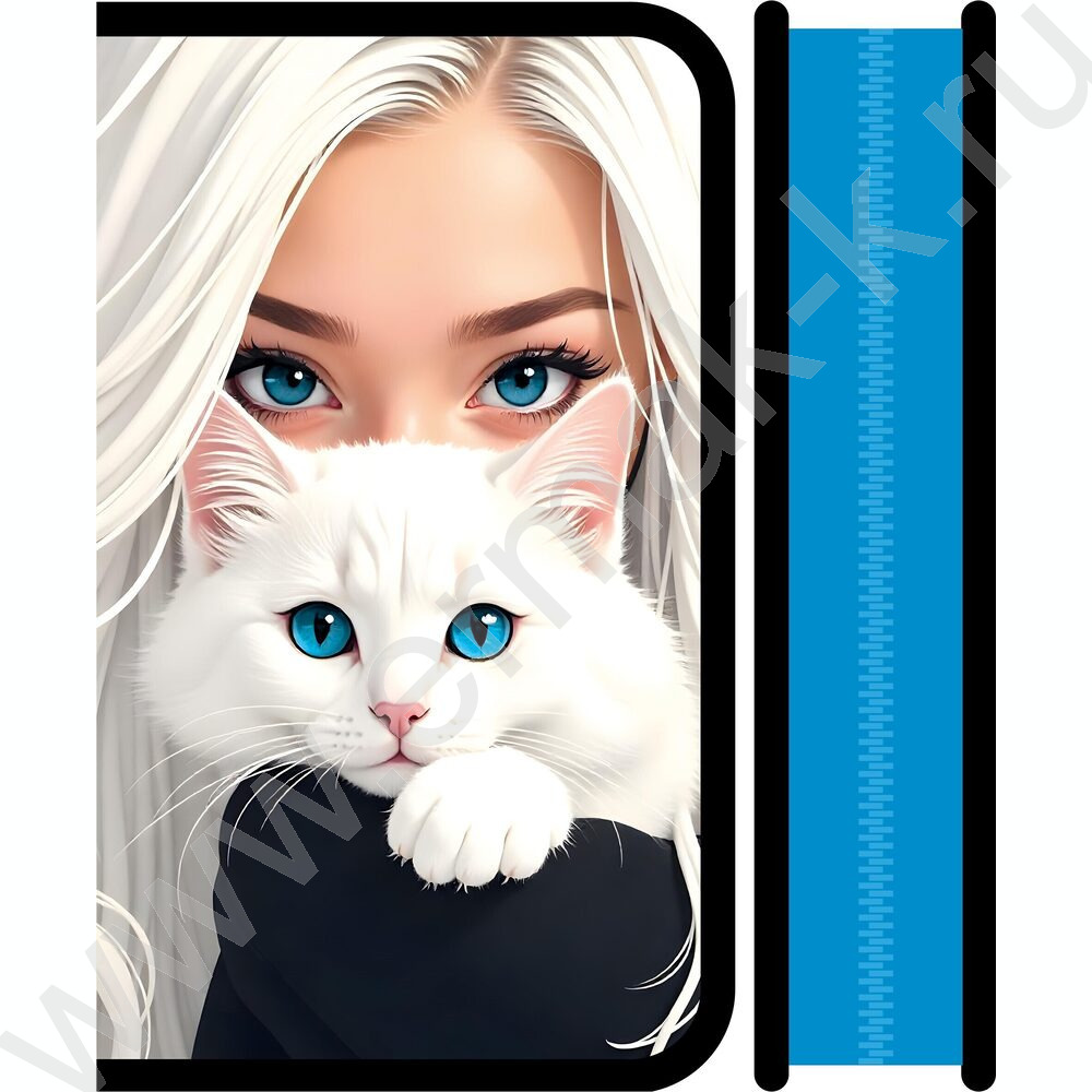 Пенал б/наполн. 1молния 190*115мм SOFT Девушка и кот