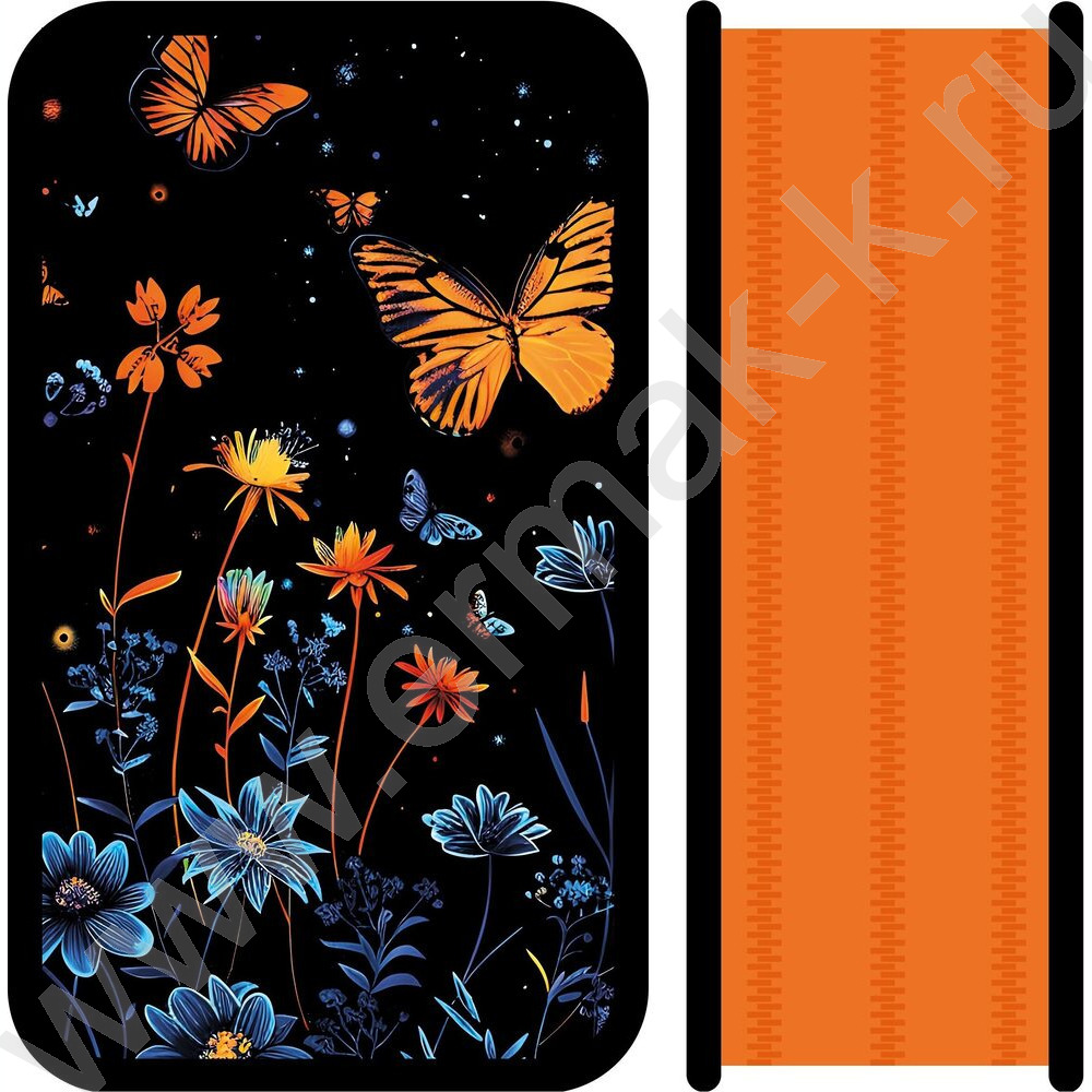 Пенал б/наполн. 3молнии 190*105мм Цветы и бабочки /большой, тканевый торец