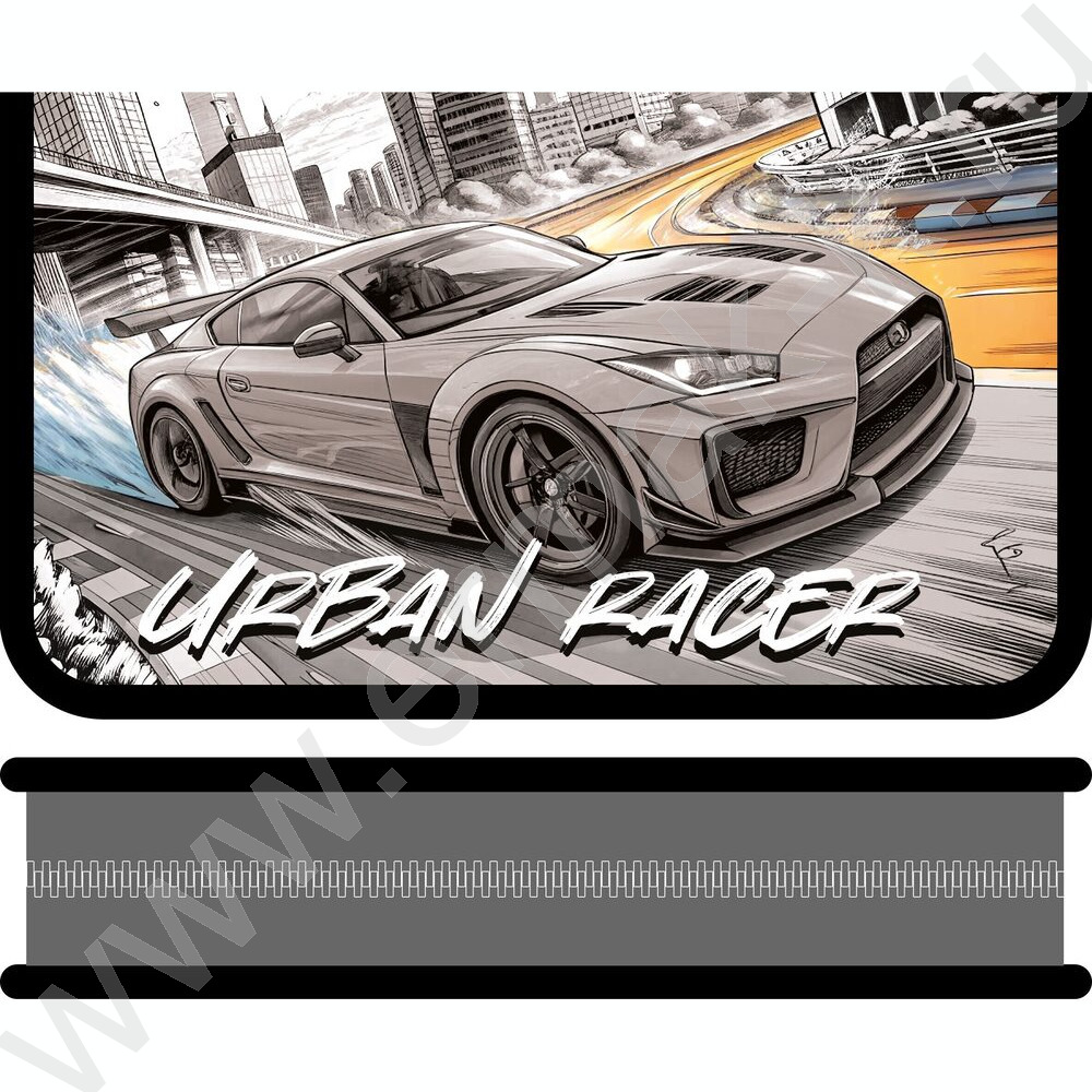 Пенал б/наполн. 1молния 190*115мм Гонка в мегаполисе /большой с откидной планкой