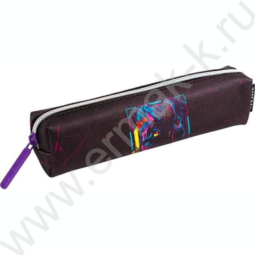 Пенал-прямоугольный 21*4*4см "Cyber Cat", молния, иск.кожа, с подкладом