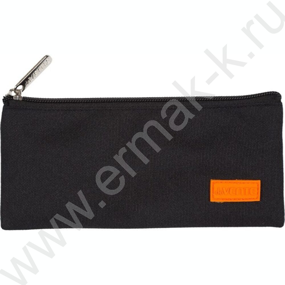 Пенал-плоский на молнии 21,5*9*1см "Uno Orange" /матовый полиэстер /черный