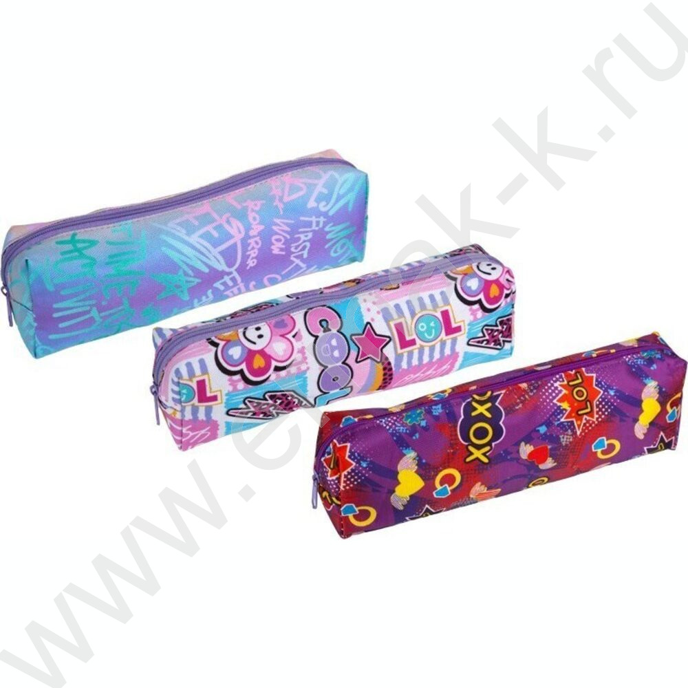 Пенал-прямоугольный 20*7*3,5см "Fashion", молния, текстиль. /ассорти