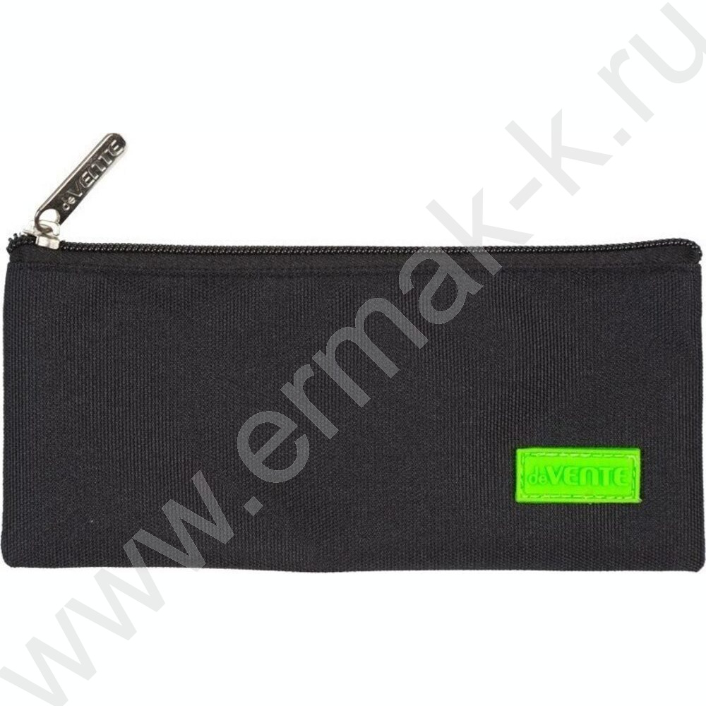 Пенал-плоский на молнии 21,5*9*1см "Uno Green" /матовый полиэстер /черный
