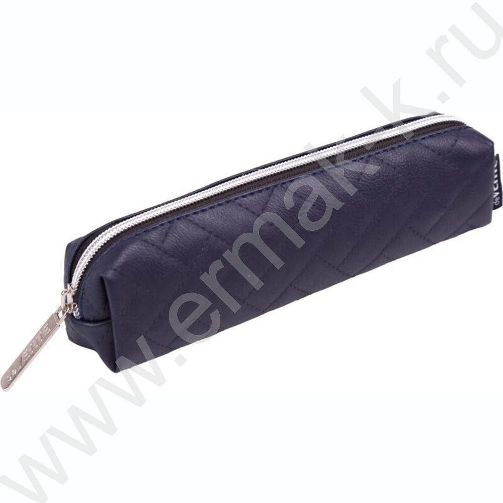 Пенал-прямоугольный 21*4*4см "Factura", молния, стеганная иск.кожа наппа /темно-синий