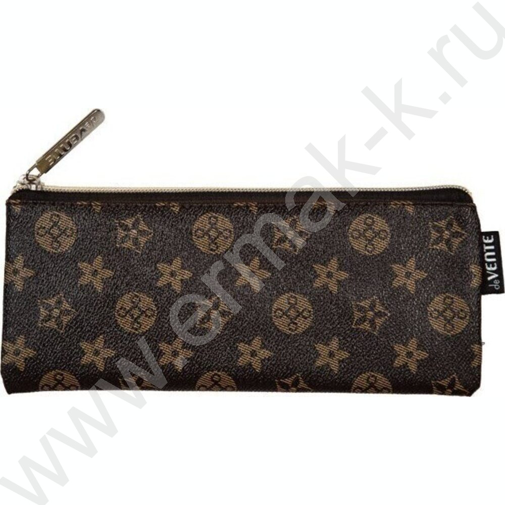 Пенал-плоский на молнии 21,5*9*1см "Monogram" /иск.кожа /коричневый