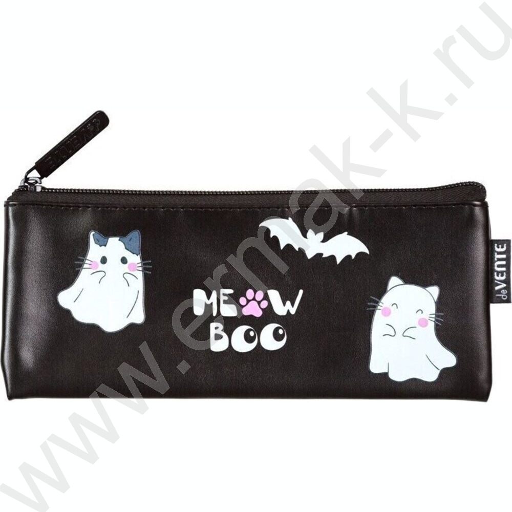 Пенал-плоский на молнии 21,5*9*1см "Ghost Meow" /матовая ативандал. иск.кожа, с подкладом