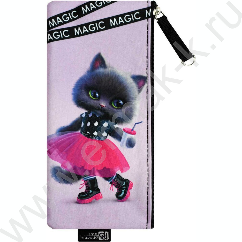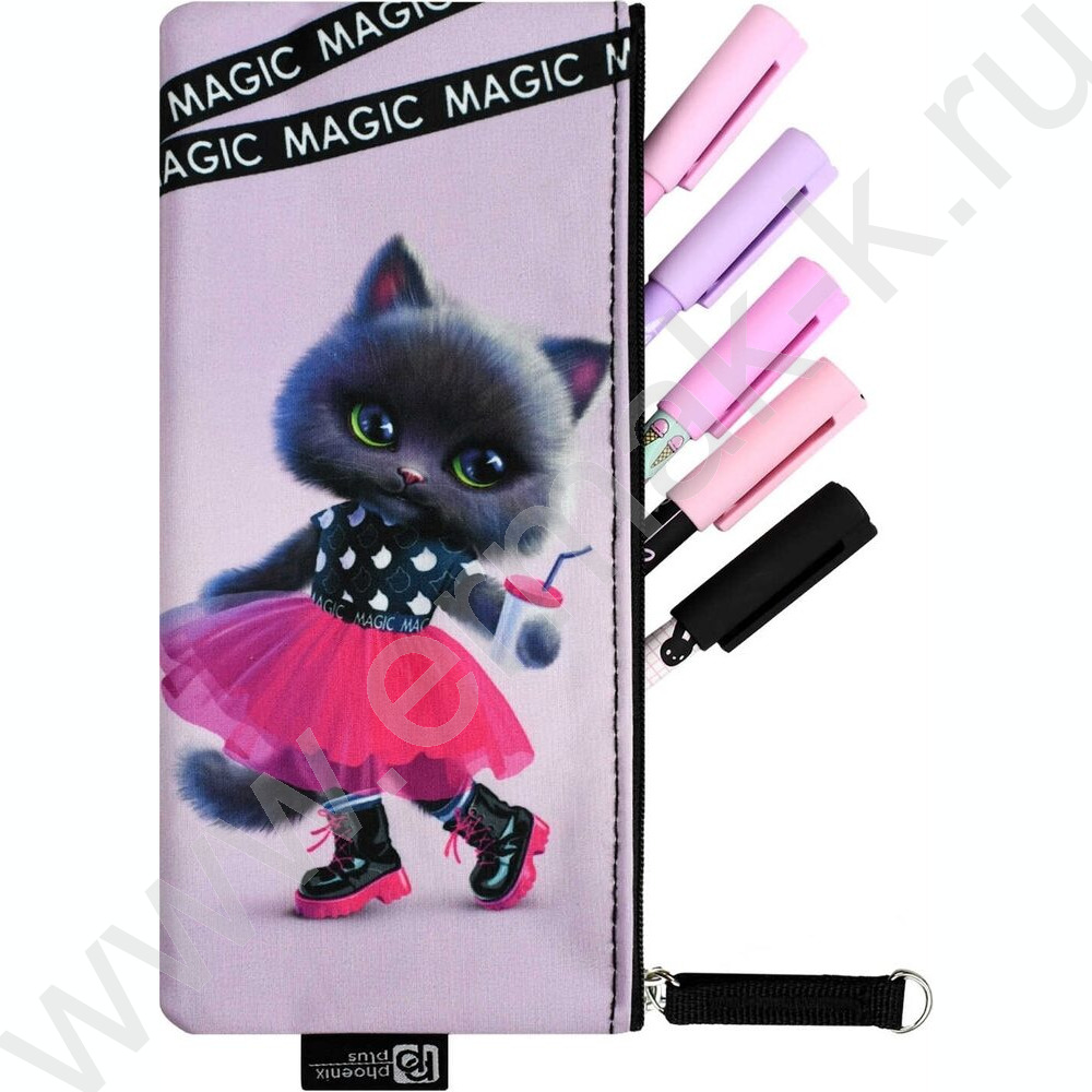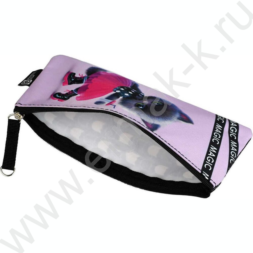 Пенал школьный микрофибра на ПВХ-основе молния "Кошечка в юбочке"