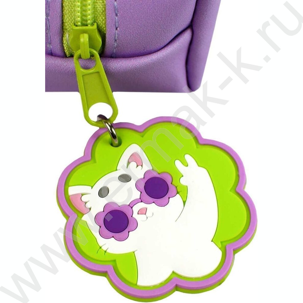 Пенал школьный искусственная кожа,цифровая печать молния "Котик в очках"