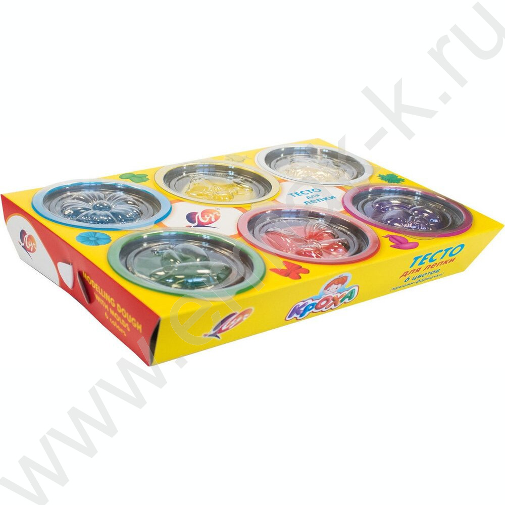 Тесто д/лепки 6цв по 80гр Кроха /+ 6 крышки-формочки