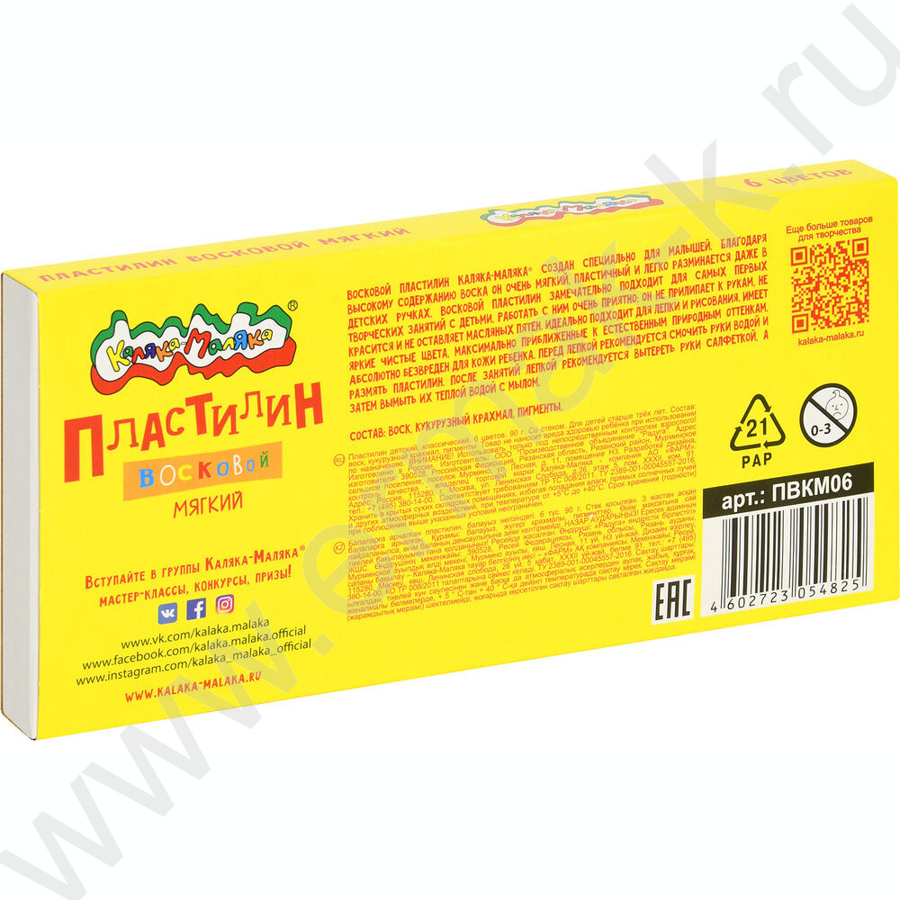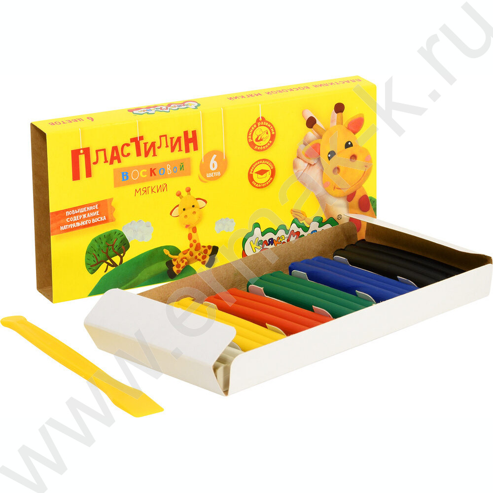 Пластилин восковой 6цв 90г Каляка-Маляка+стек
