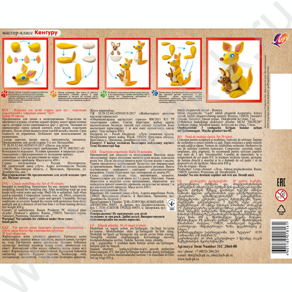 Пластилин 30цв 450г "ZOO" /картон.кор.