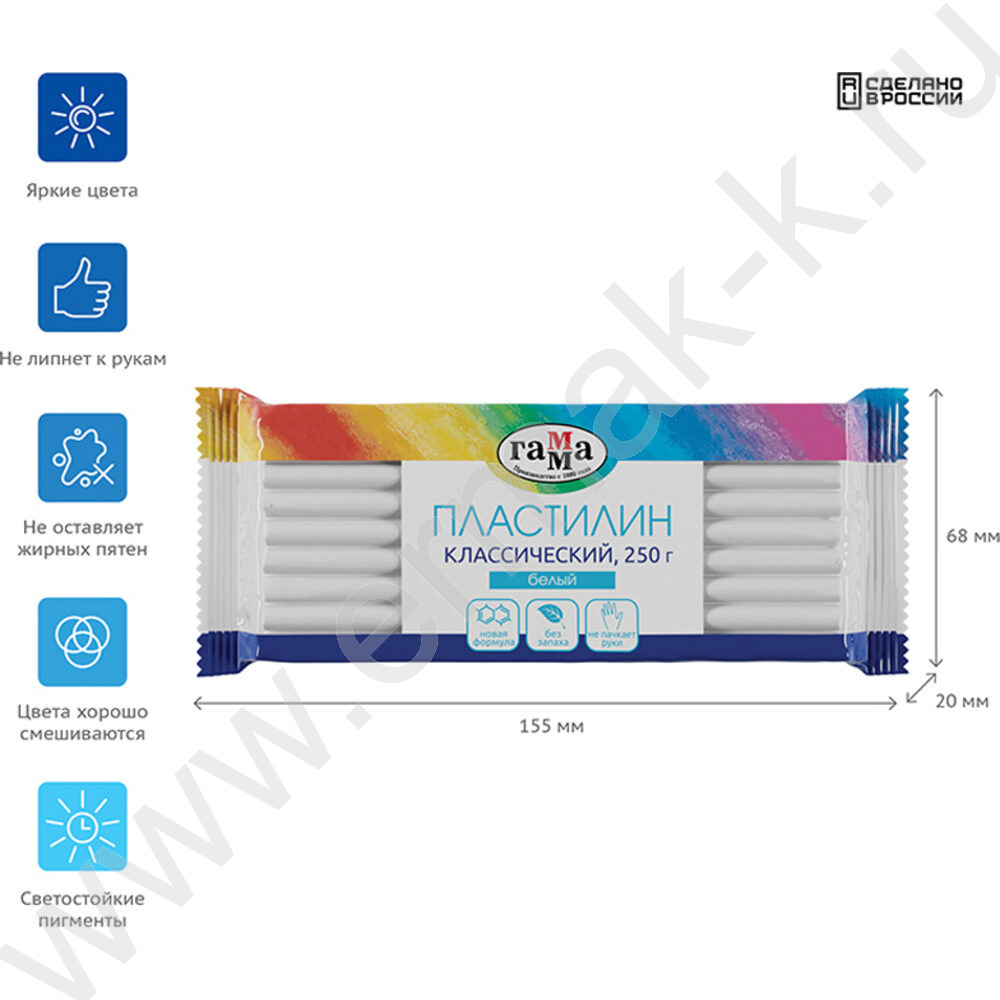 Пластилин 250г "Классический" белый