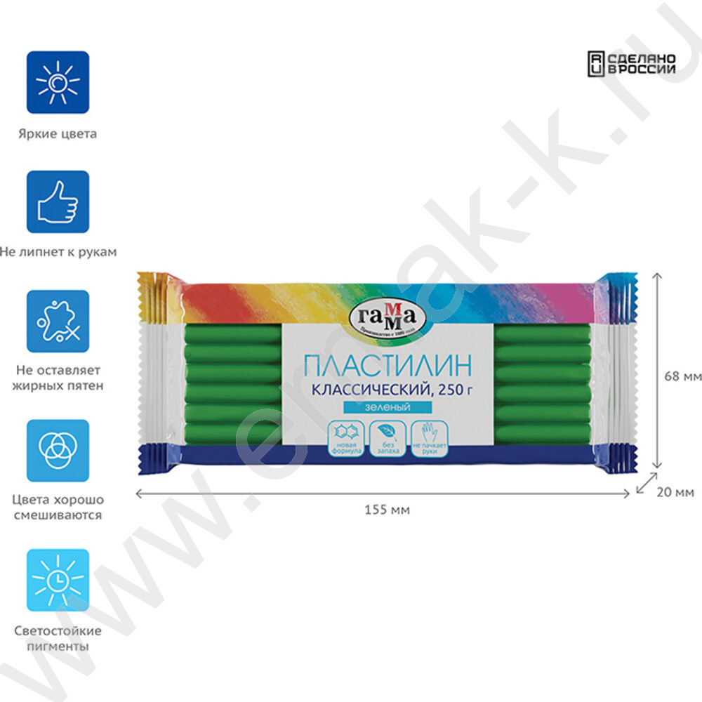 Пластилин 250г "Классический" зеленый