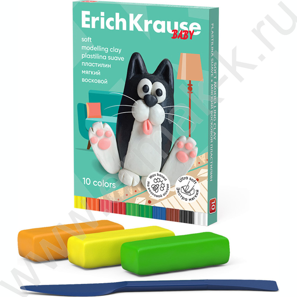 Пластилин восковой 10цв 130г Мягкий /+стек