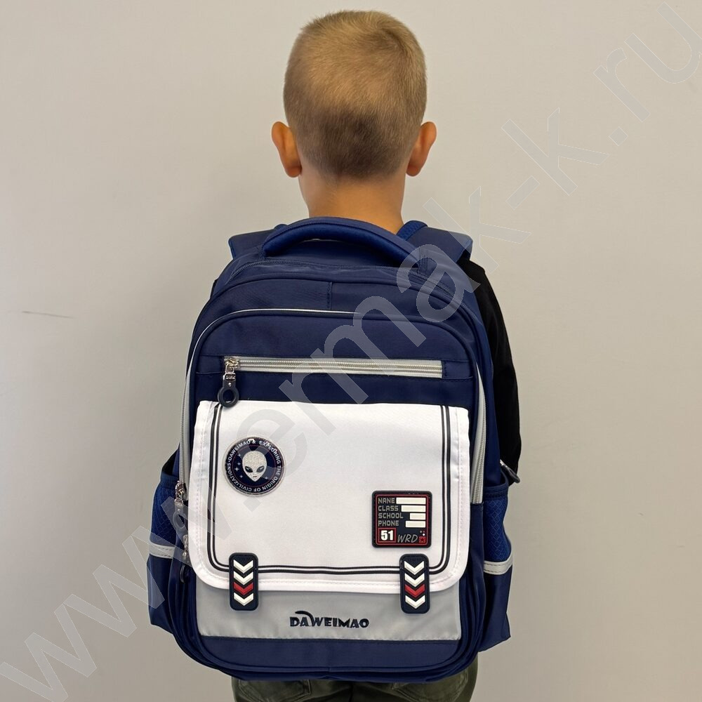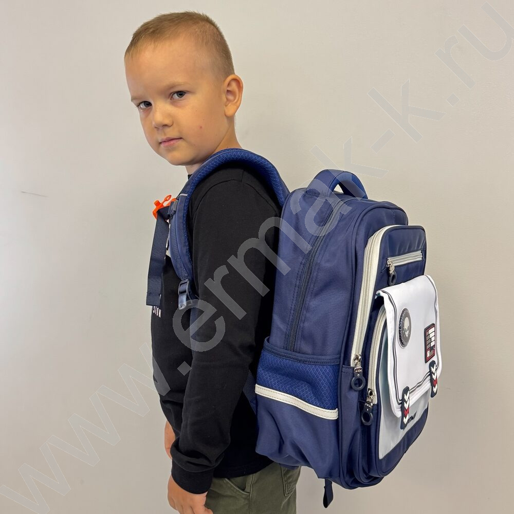 Ранец эргономичная спинка /синий, серый, белый /2отд. 2 карм. спереди, 2 карм. по бокам