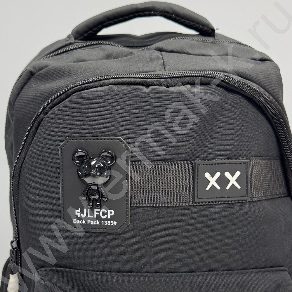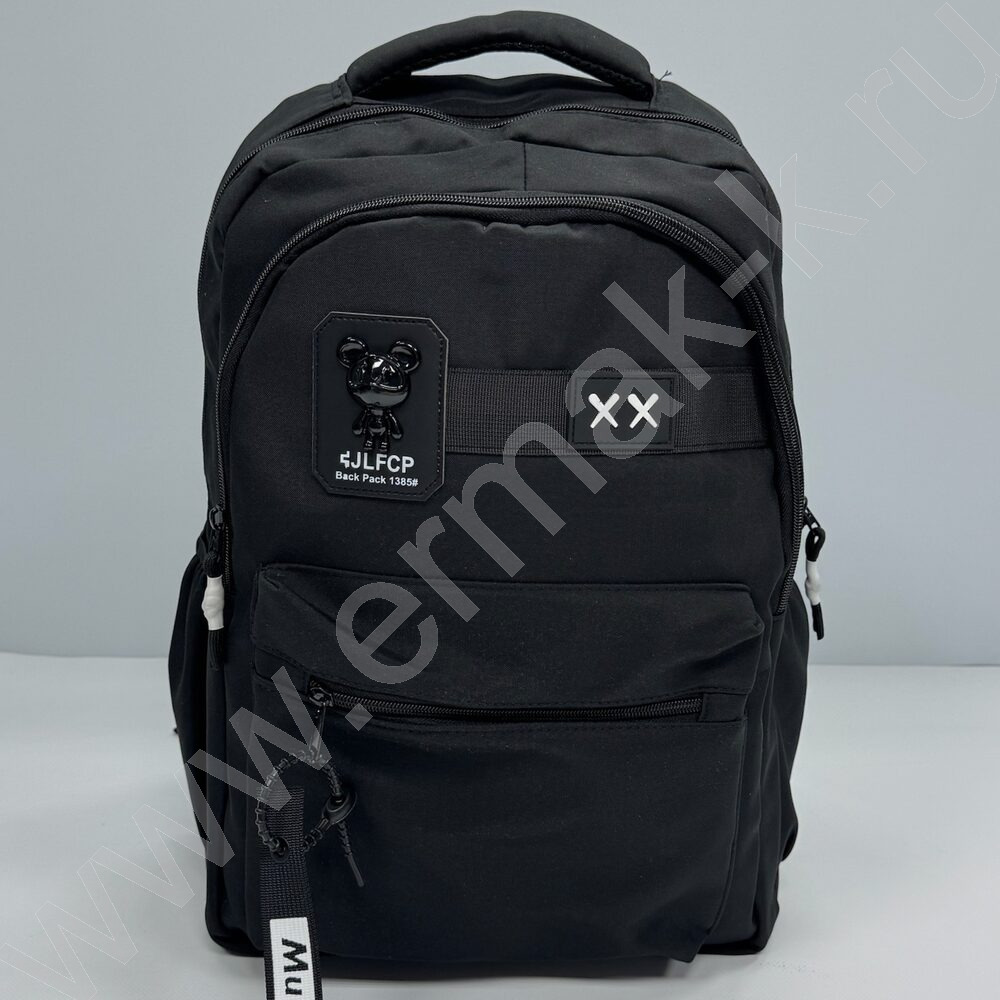 Ранец с медведем 46*32*14см. /черный, полиэстр