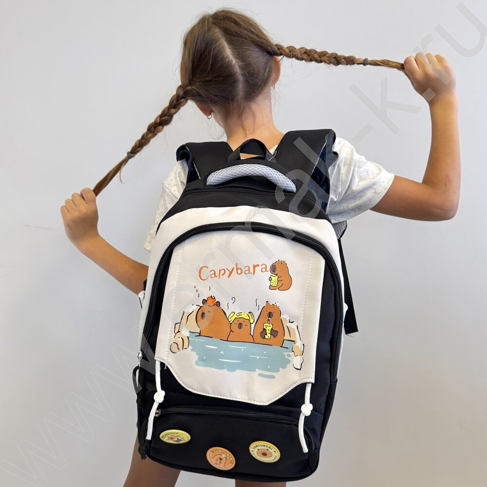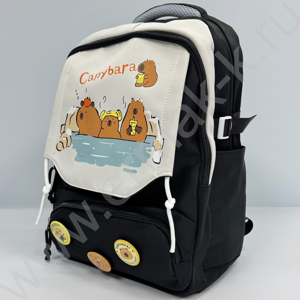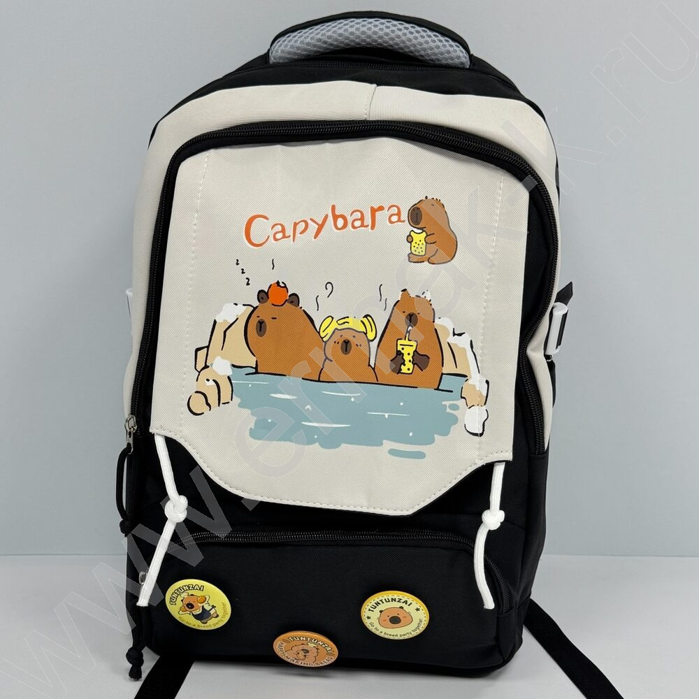Рюкзак 44*31*14см. "Капибара" /черный + 3 значка