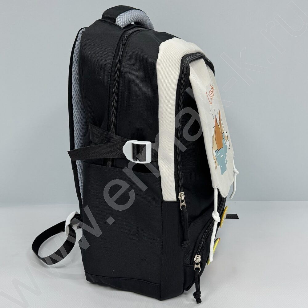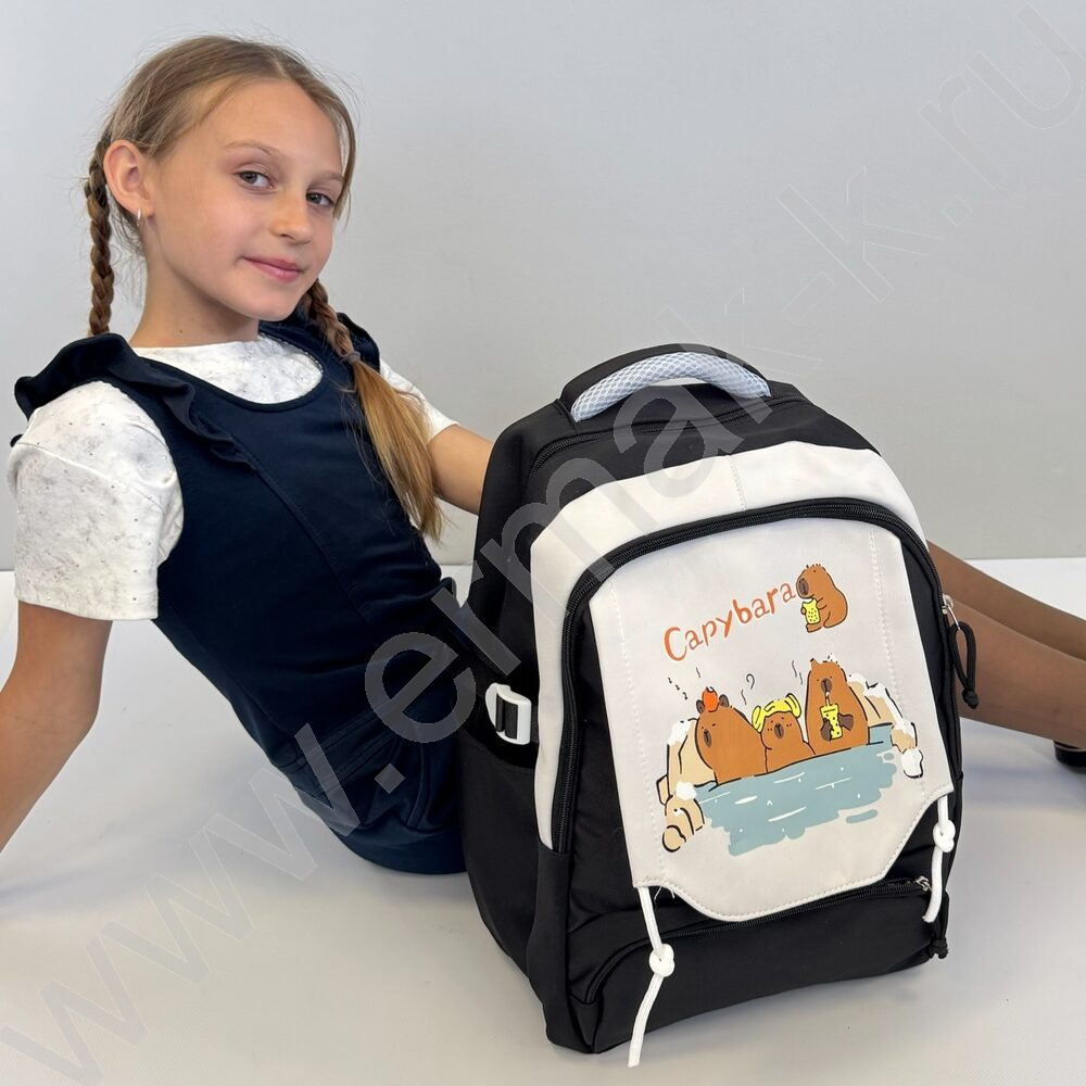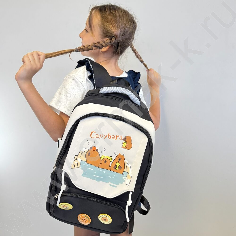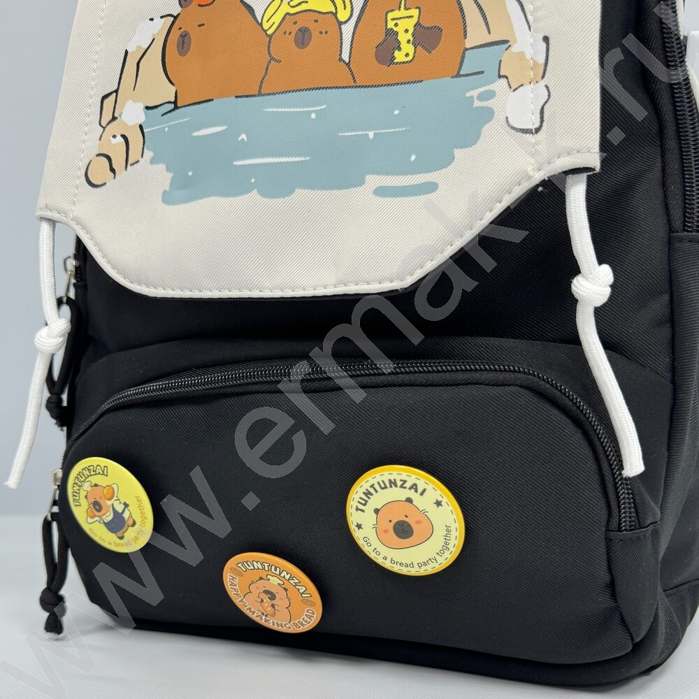 Рюкзак 44*31*14см. "Капибара" /черный + 3 значка