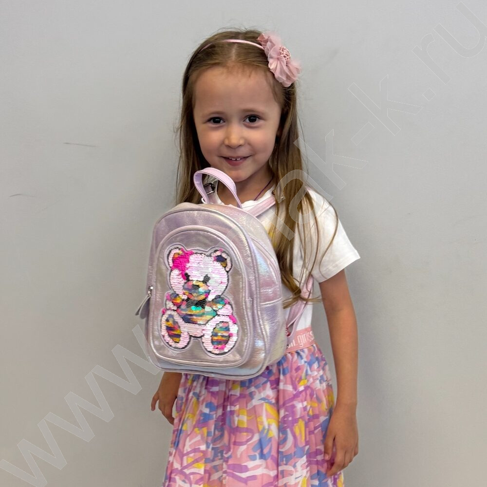 Рюкзак 24*21*10см. "Медвежонок" пайетки /сиреневый
