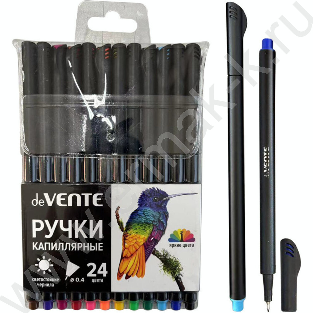 Ручка кап. /набор 24цв/ "Drops" с круглым черным корпусом/ 0,4мм /пласт. блистер