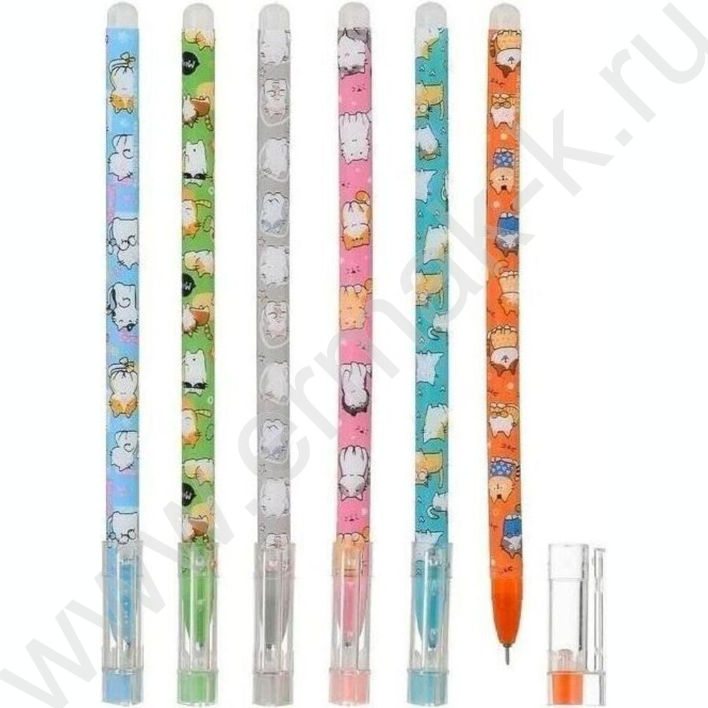 Ручка гелевая со стираемыми чернилами синяя 0,5мм Кошки/яркий, цветной корпус с рисунком /ассорт