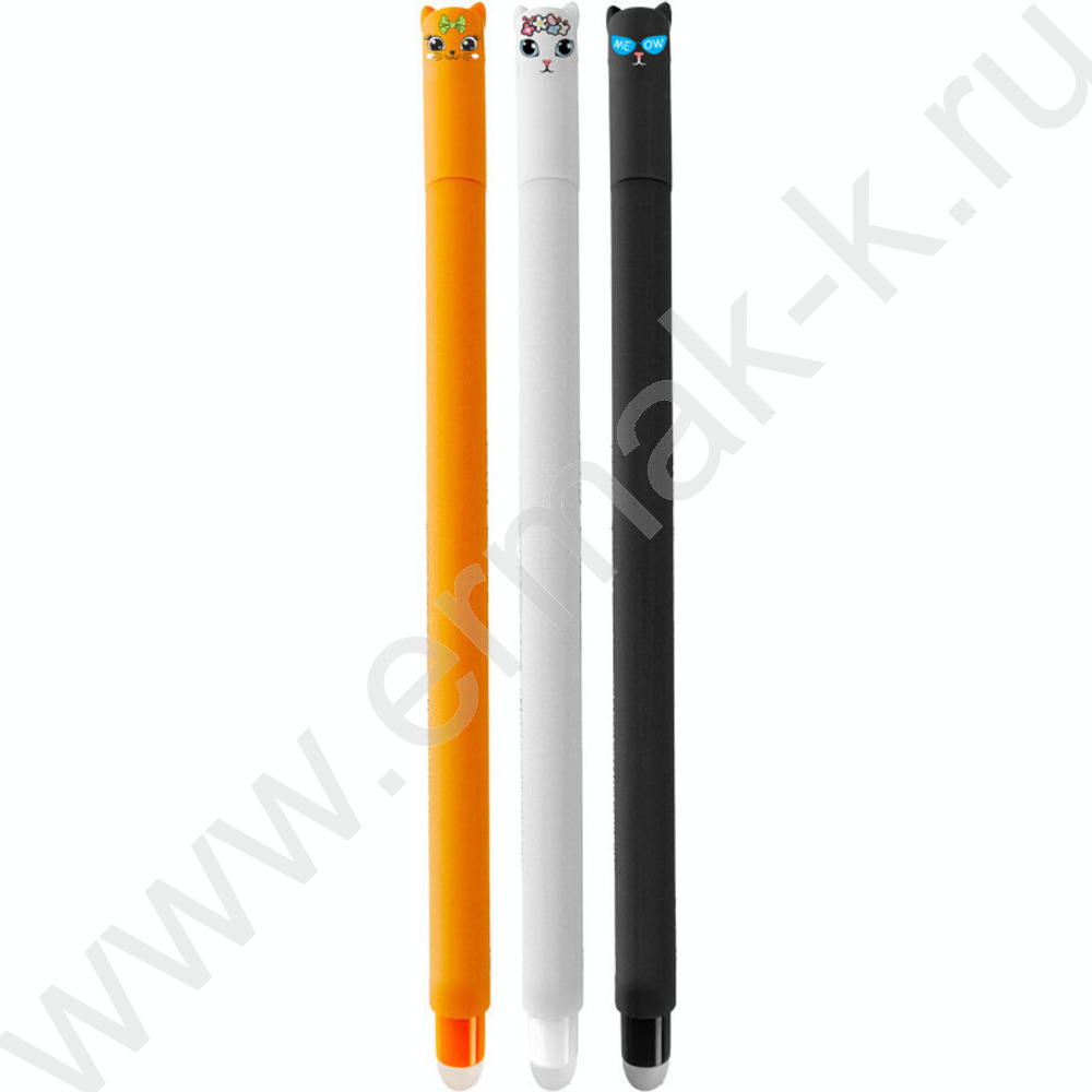 Ручка гелевая Пиши-Стирай 0,5мм синяя "Lady Kitty" с декор. элементом на колпачке /корпус ассорт