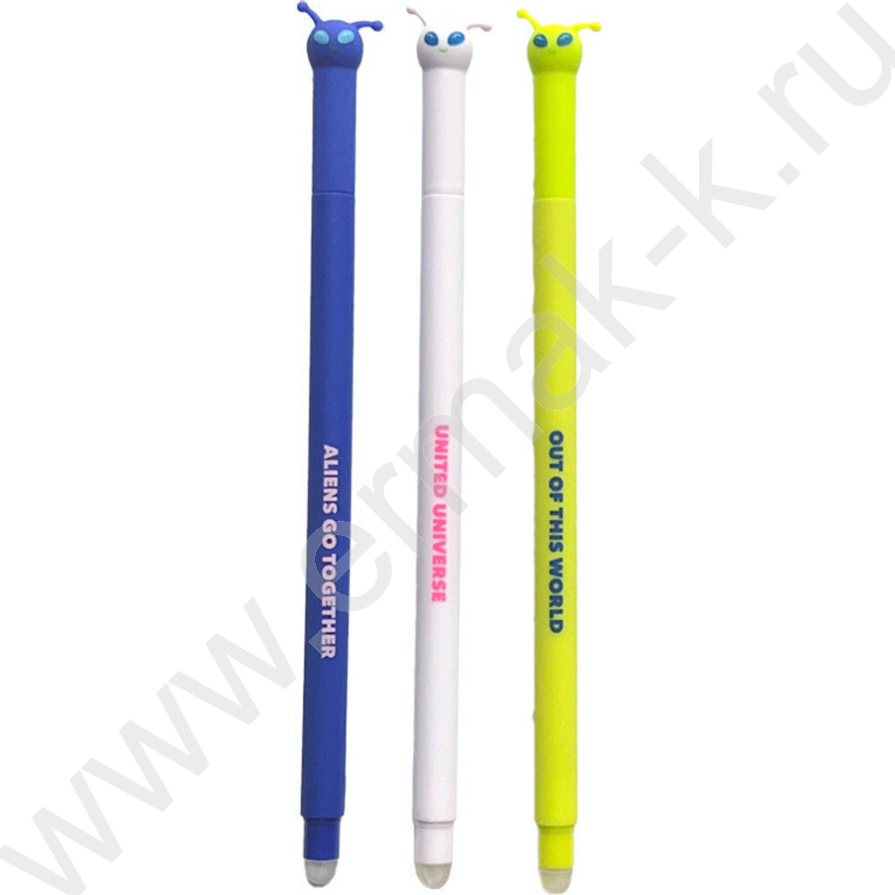 Ручка гелевая Пиши-Стирай 0,5мм синяя "Alien" с декор. элементом на колпачке /корпус ассорти