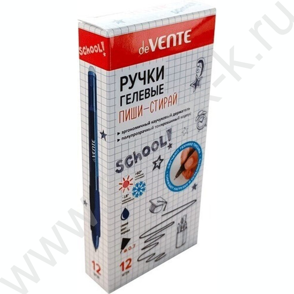 Ручка гелевая Пиши-Стирай 0,7мм синяя "School" /полупрозр. корпус /резин. держатель /2 ластика