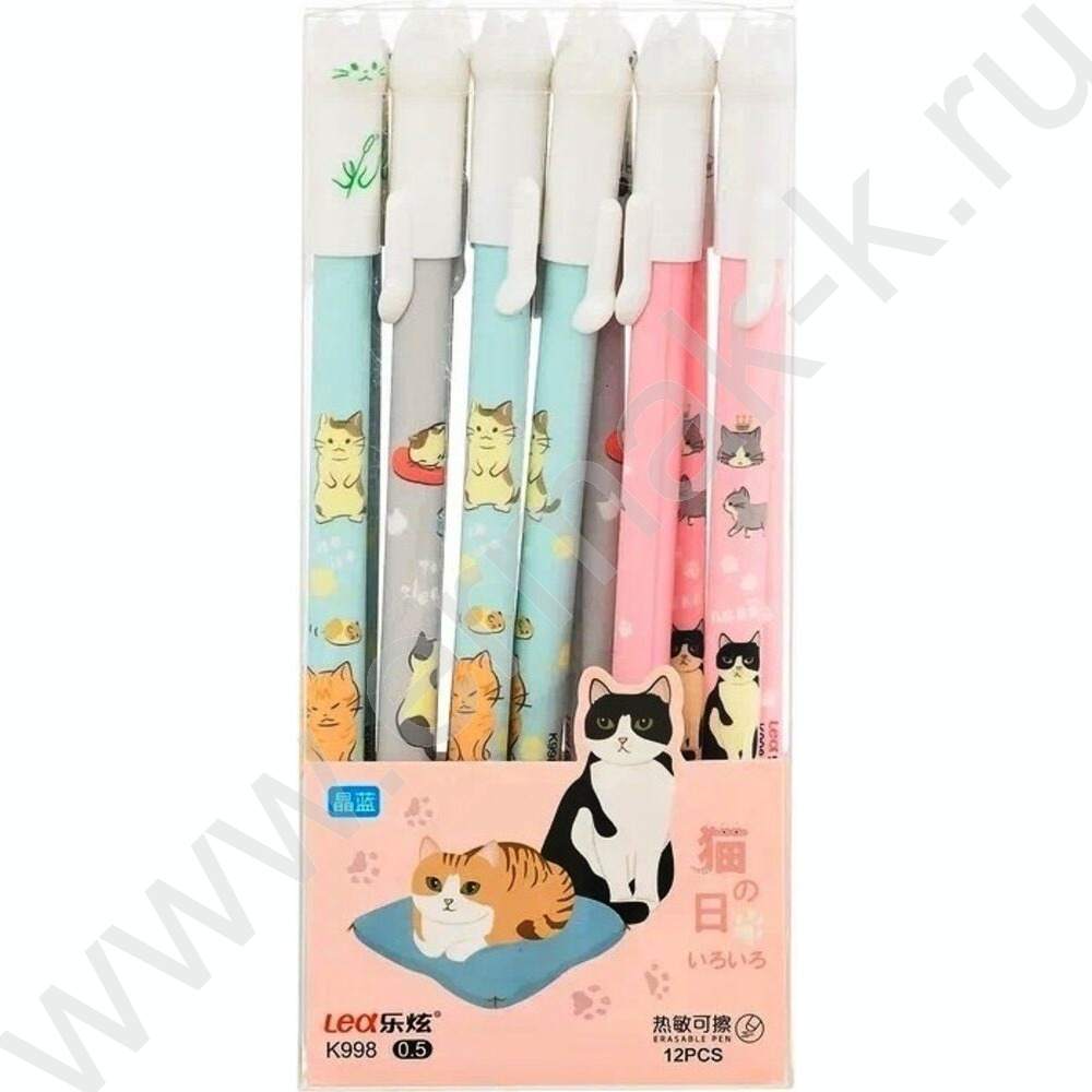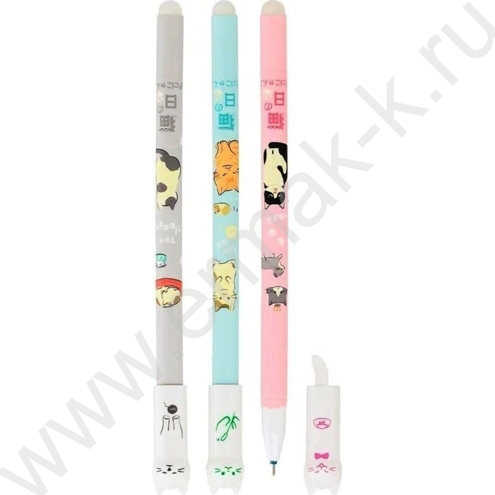 Ручка гелевая со стираемыми чернилами синяя 0,5мм Кошечки/цветной корпус с рисунком /ассорт