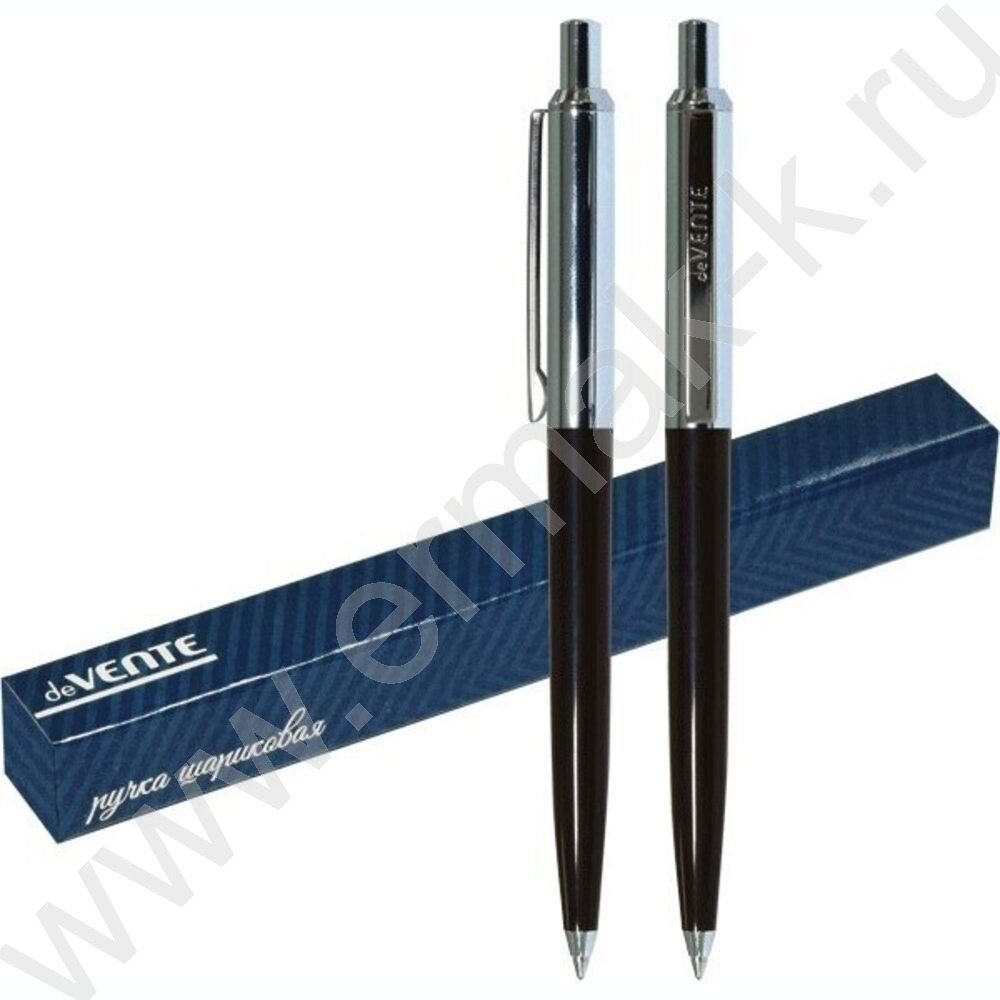 Ручка шар черный корпус и хром.элементы /цвет чернил синий