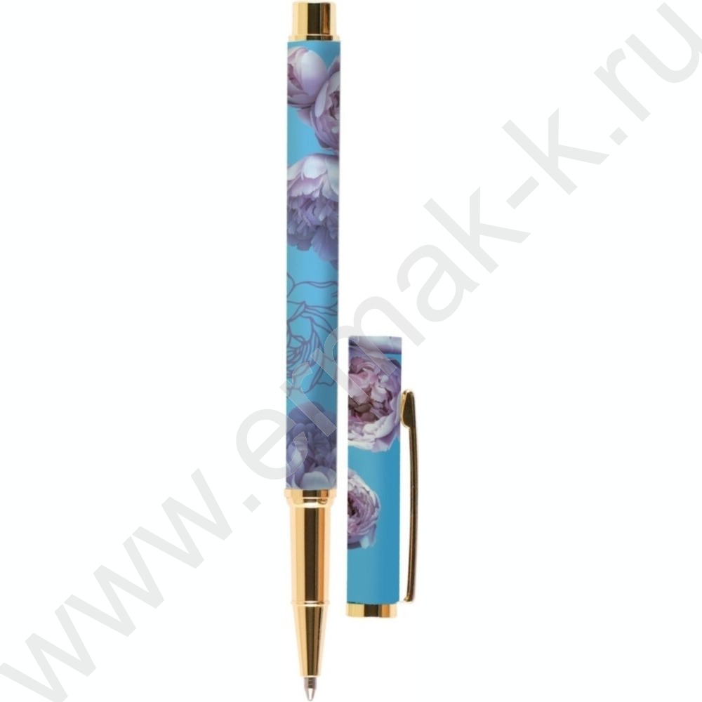 Ручка шар метал синяя "Девушка с пионами" 0,7мм