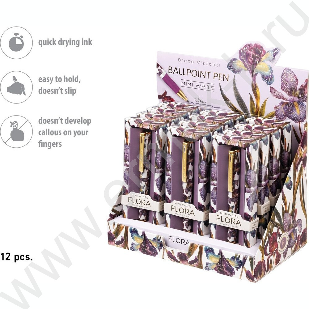 Ручка шар Mimiwrite.Flora.Ирисы синий 0,7мм /корпус SOFT TOUCH NEW