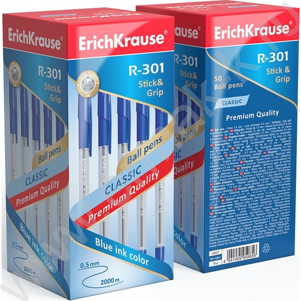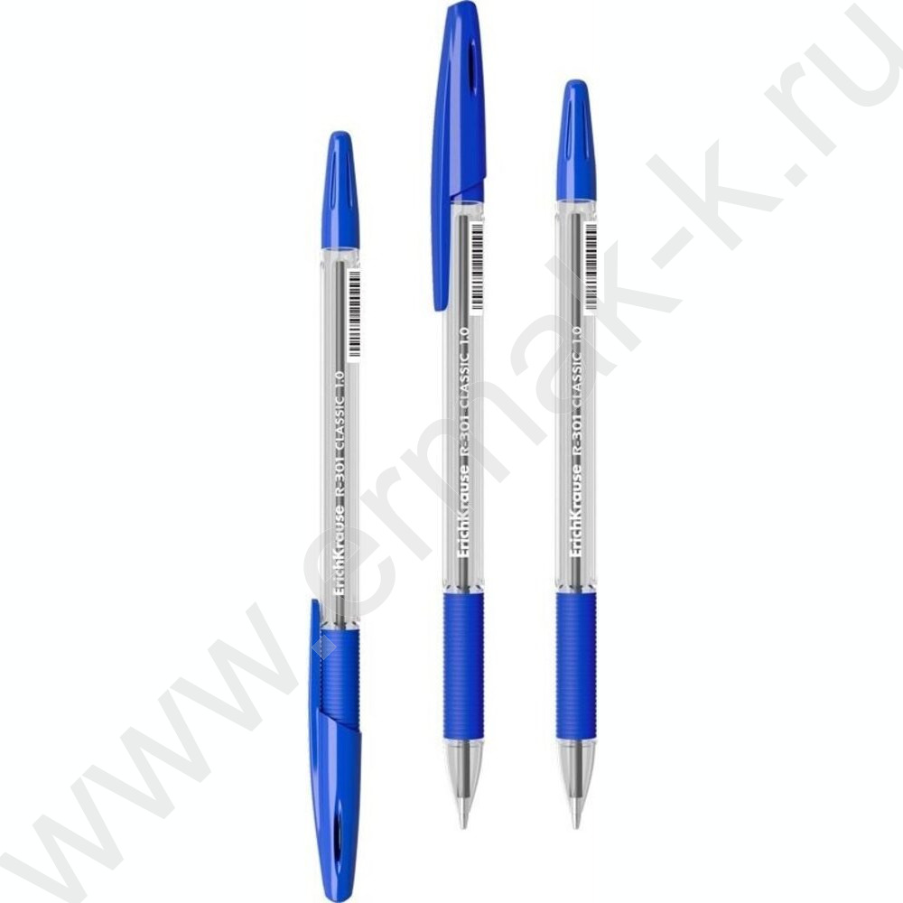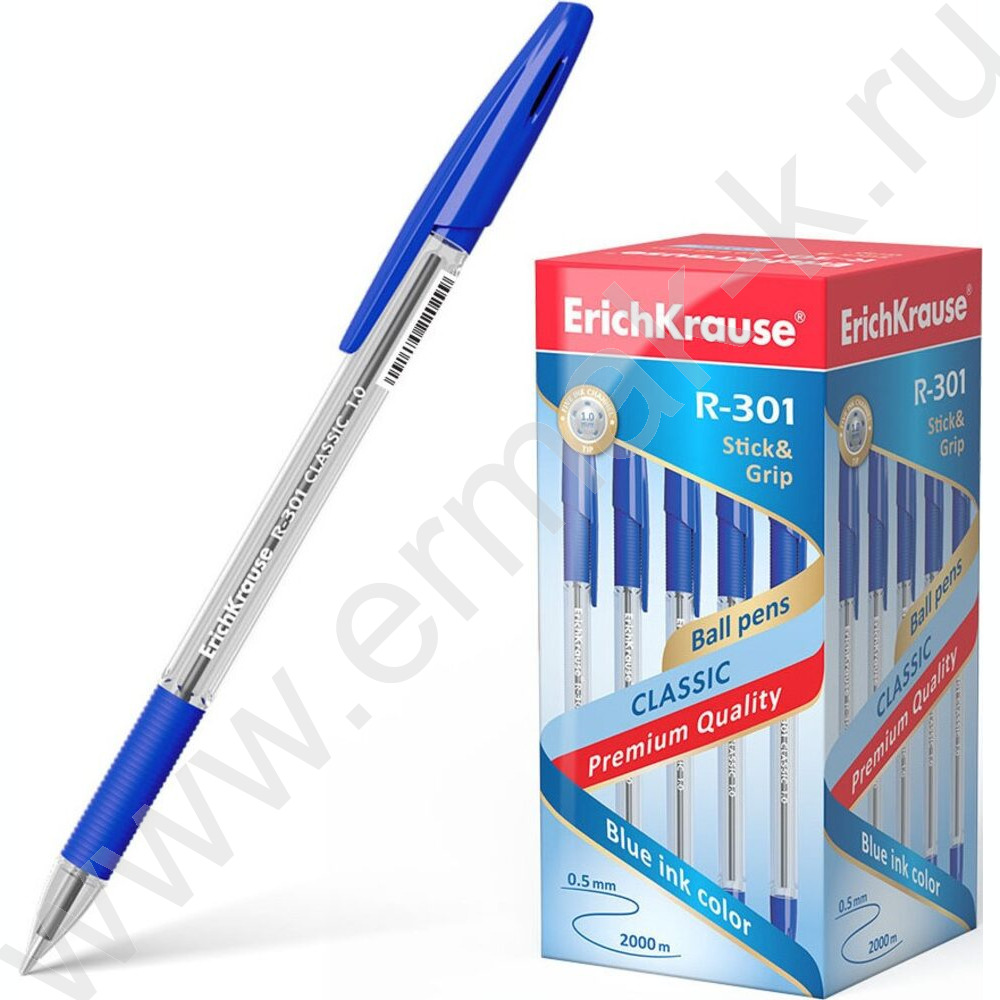 Ручка шар R-301 Stick&Grip Classic синяя 1,0мм с резин.держателем