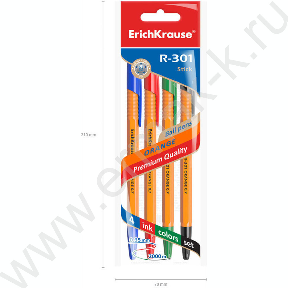 Ручка шар /набор 4шт/4цв R-301 Stick Orange 0,7мм