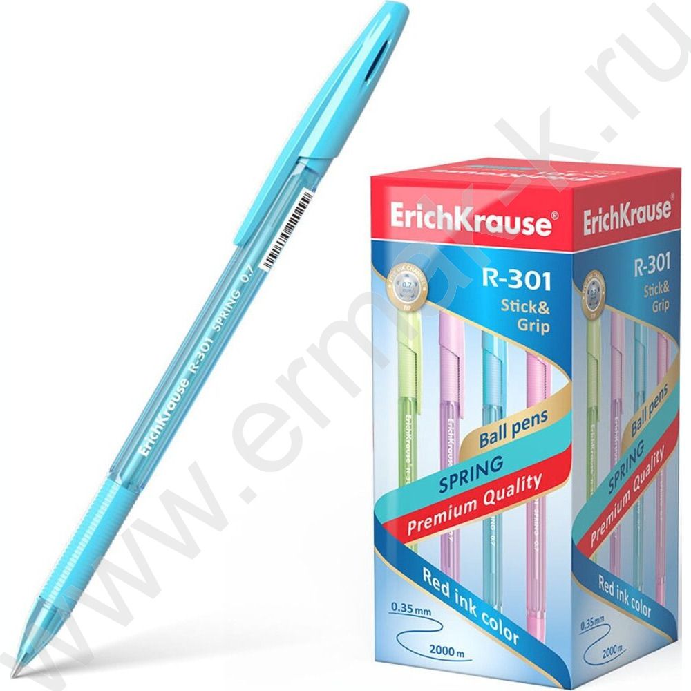 Ручка шар R-301 Stick&Grip Spring 0,7мм синяя с резин.держателем