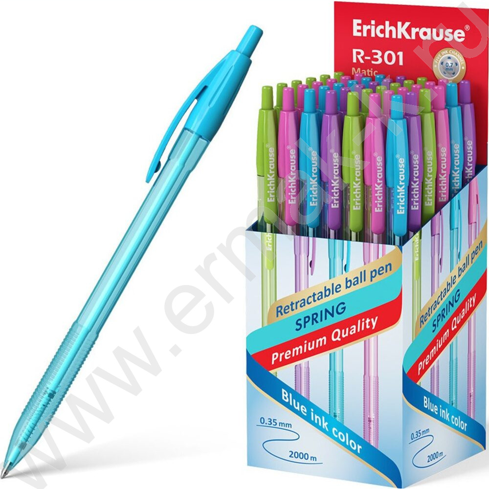 Ручка шар авт R-301 Matic Spring 0.7мм, синяя /корпус ассорти