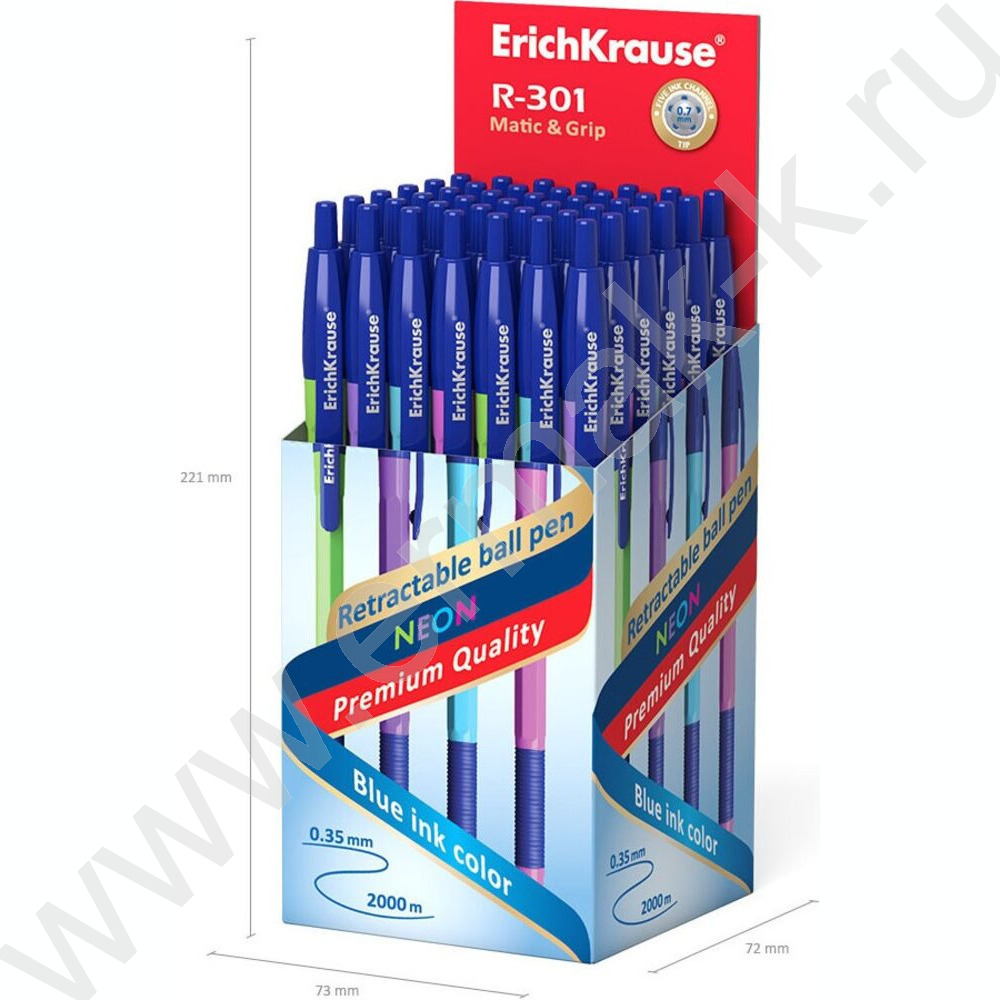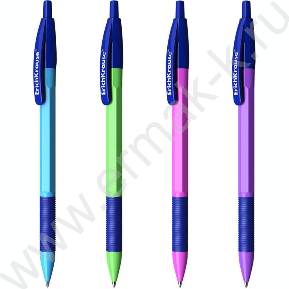 Ручка шар авт R-301 Neon Matic&Grip 0.7мм синяя /корпус ассорти /резиновый держатель