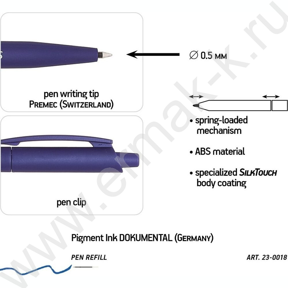 Ручка шар авт SlimClick.Original синяя 0,5мм /антискольз.корпус/3цв.корпуса