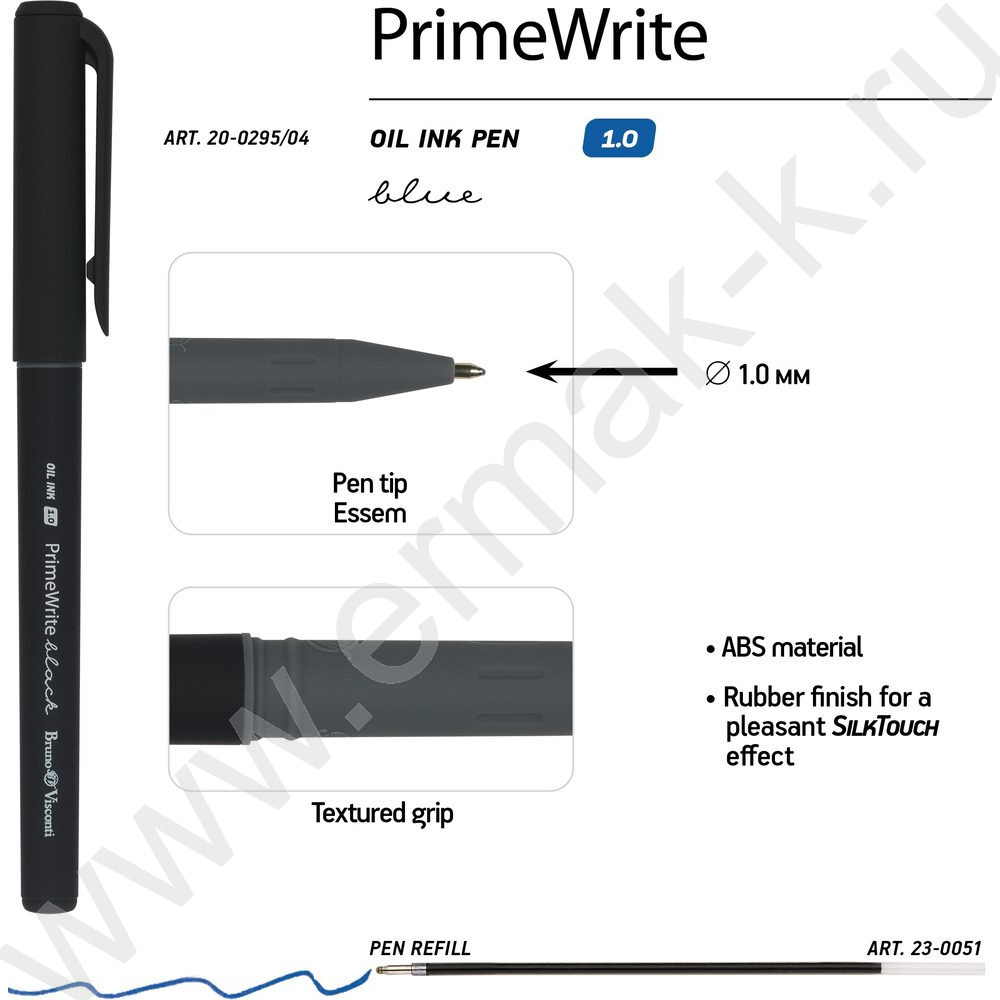 Ручка шар на масл.основе 1,0мм синяя PrimeWrite. Basic. Black