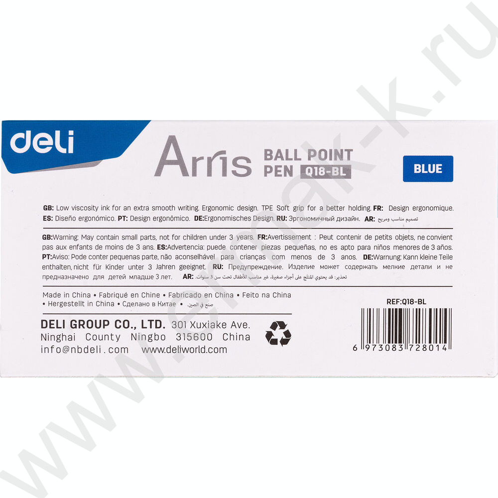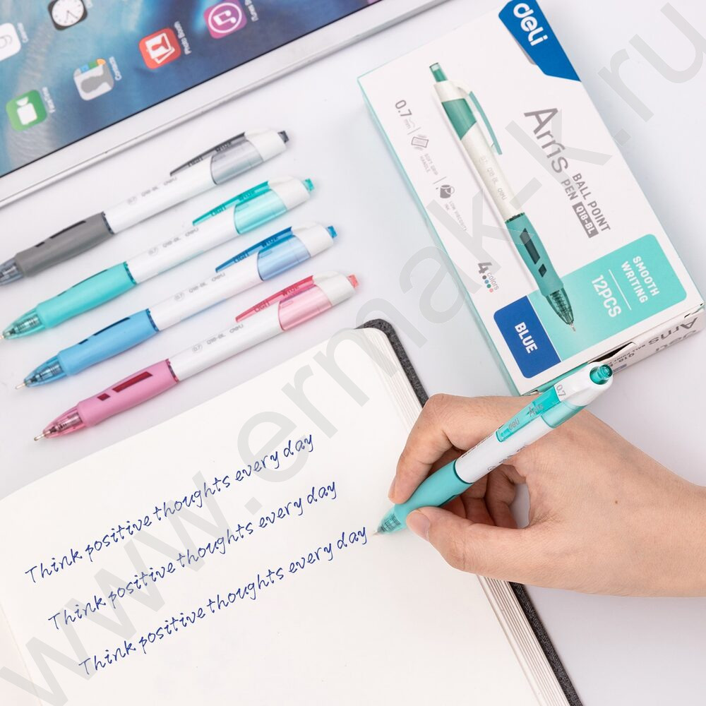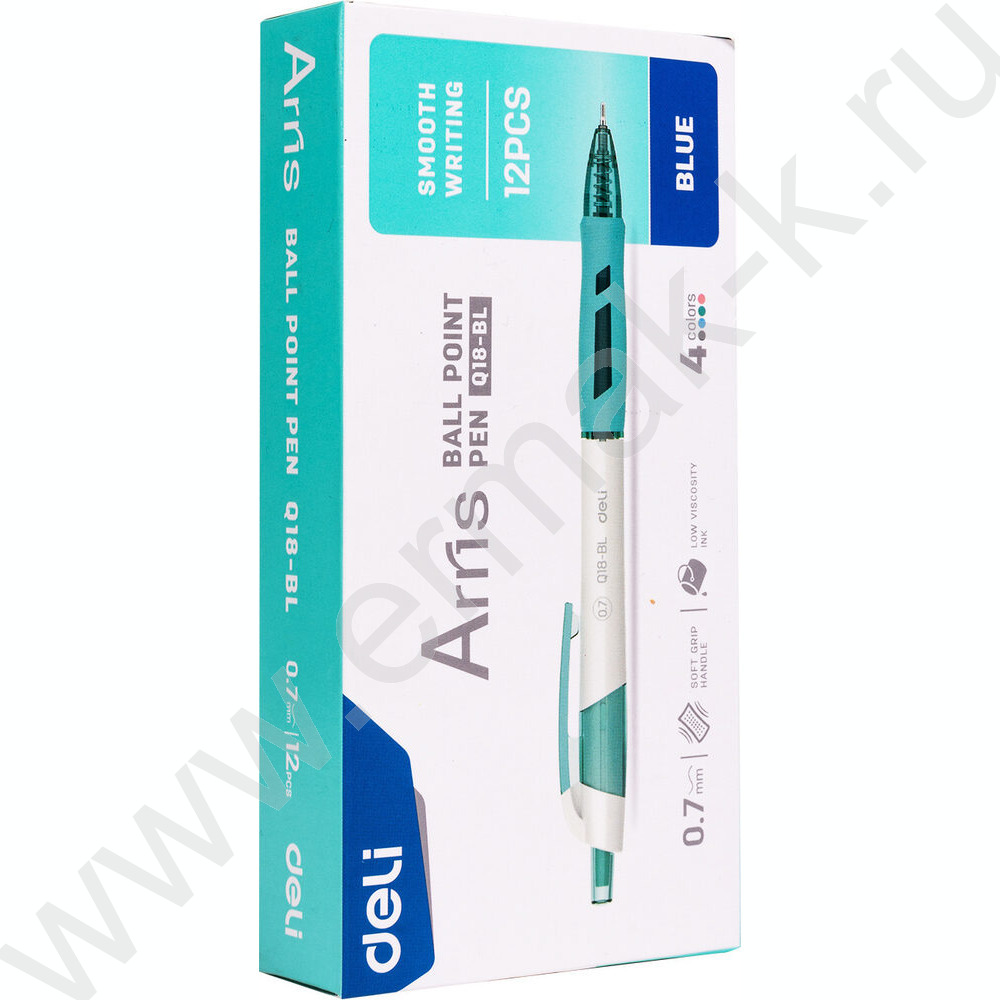 Ручка шар авт синяя 0,7мм Arris /корпус - ассорти/белый, резин. манжета