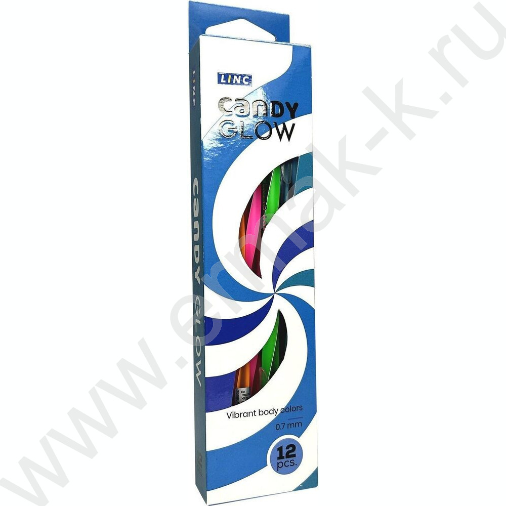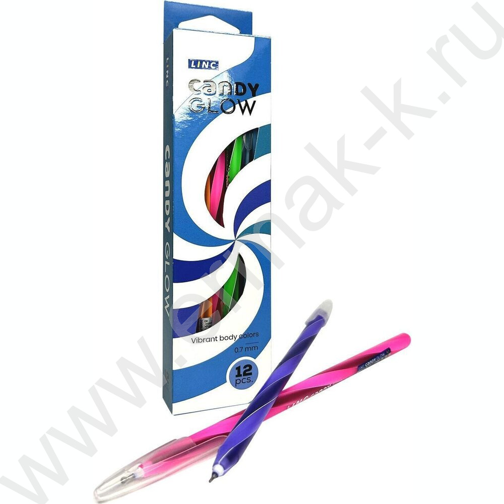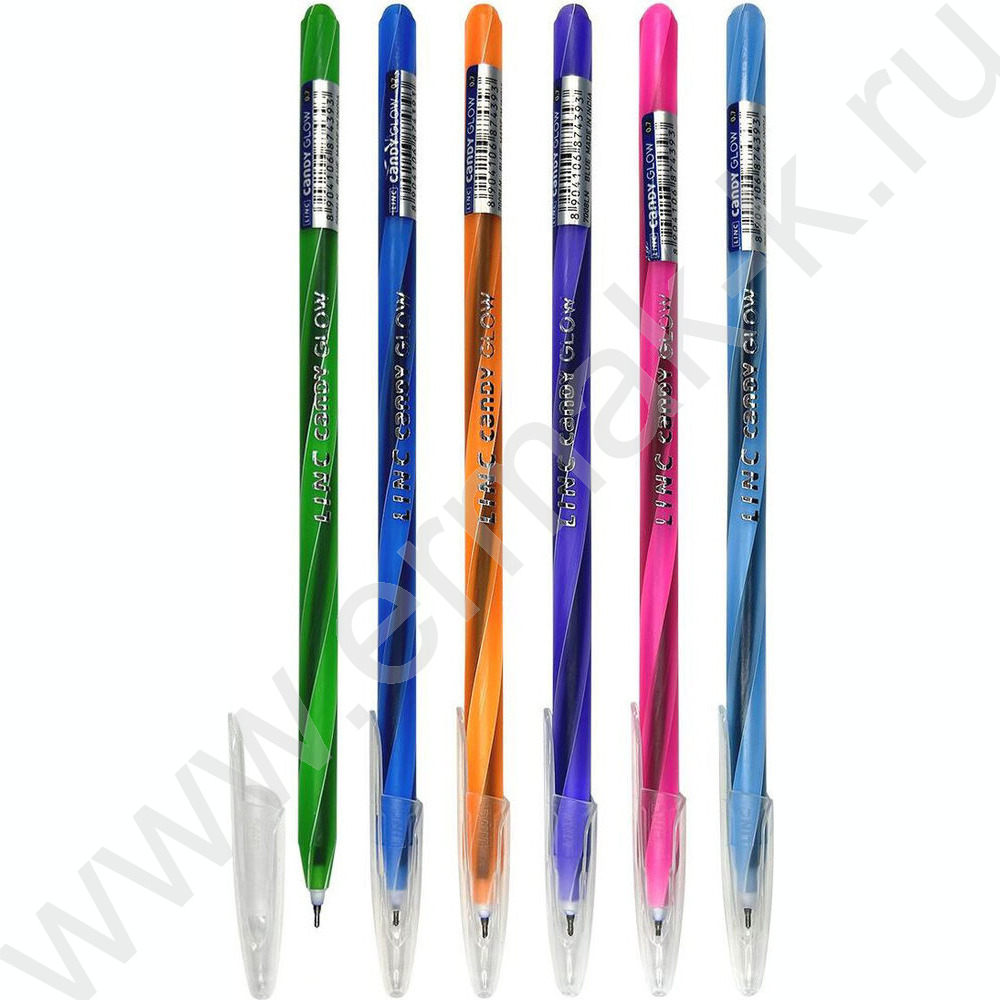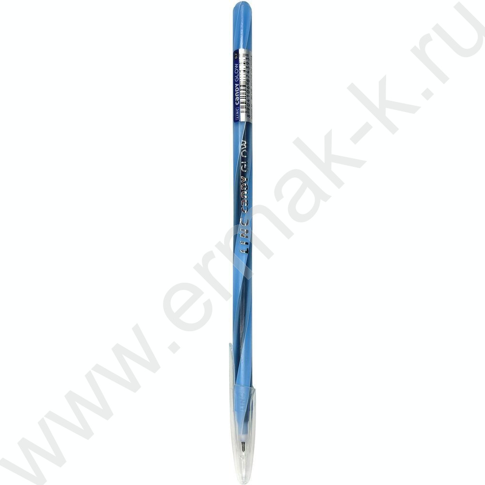 Ручка шар CANDY Glow синяя 0,7мм, круглый корпус ассорти, игольчатый наконечник