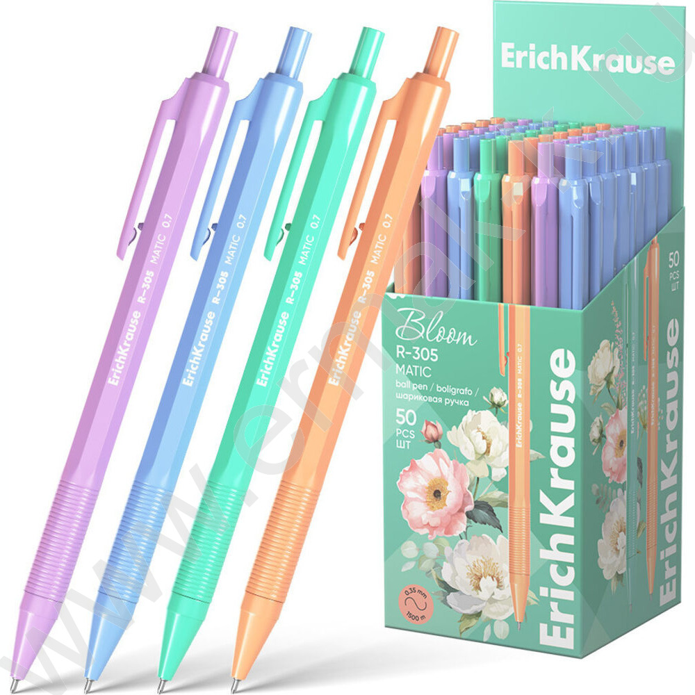 Ручка шар авт R-305 Matic Pastel Bloom 0,7мм, синяя /корпус - ассорти